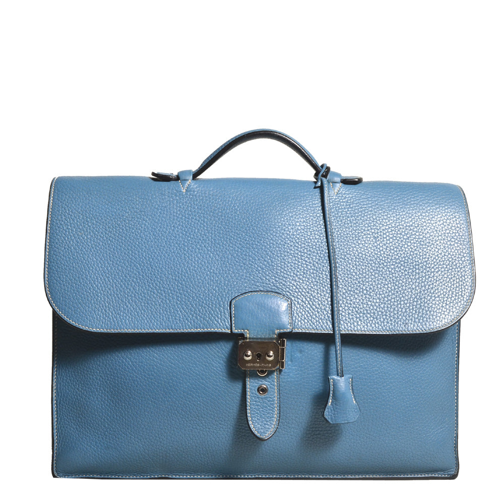 Hermes Sac A Depeche Blue Jeans Togo Leather Palladium