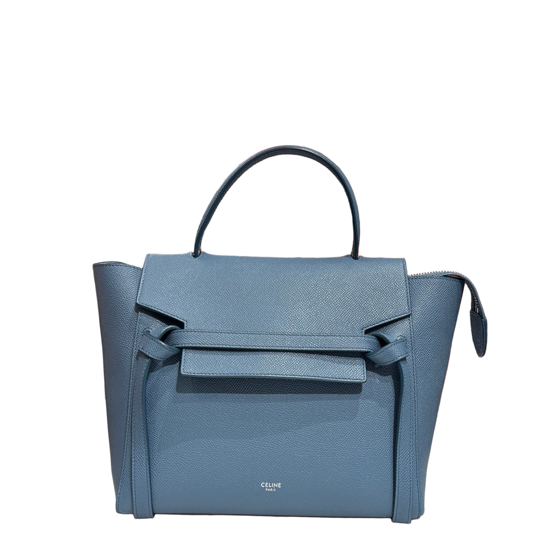 Celine Tasche Belt Bag Micro Leder Taubenblau Schulterriemen Hardware Silber