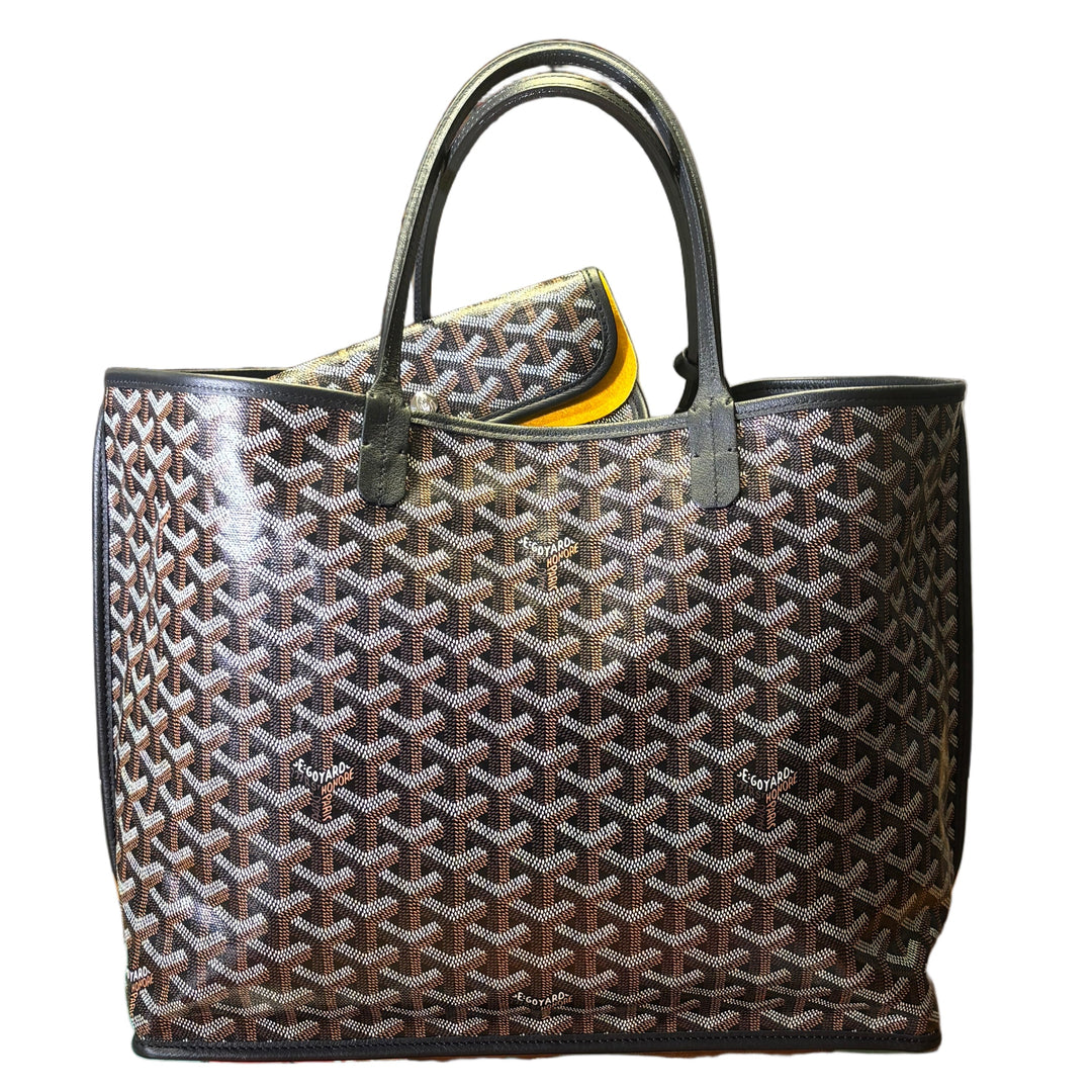 Goyard Tasche Anjou Reversible PM / Pochette Canvas Schwarz Braun Creme Honore Paris / Leder Schwarz