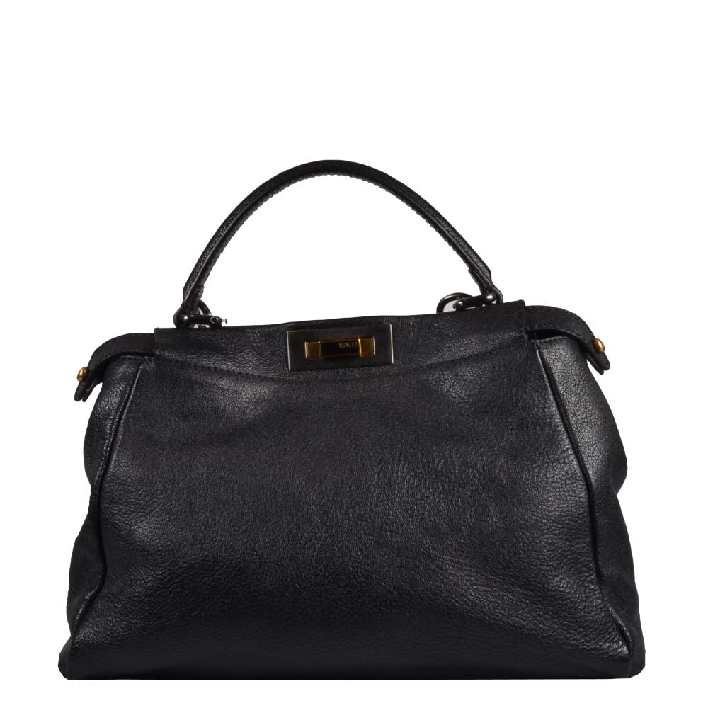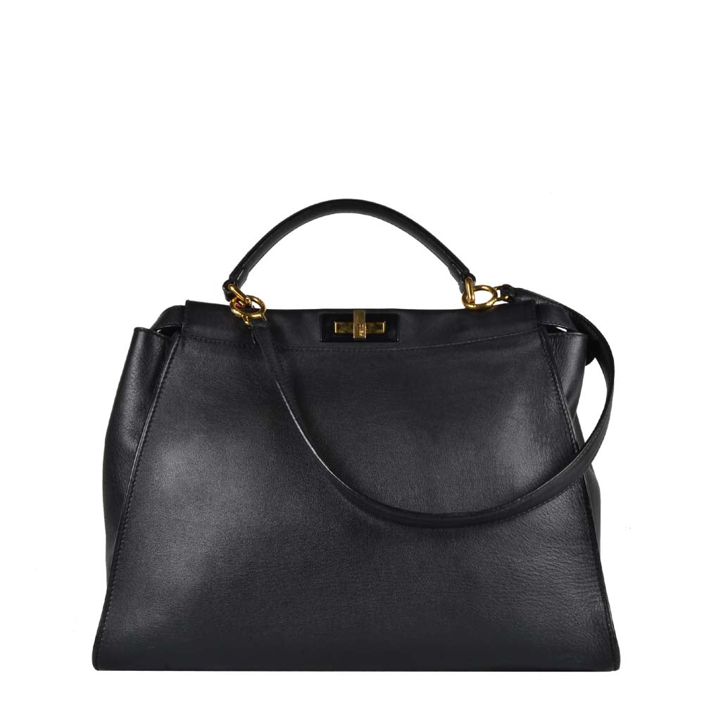 Fendi Peekaboo Grande Nappa Leder Schwarz Hardware Gold
