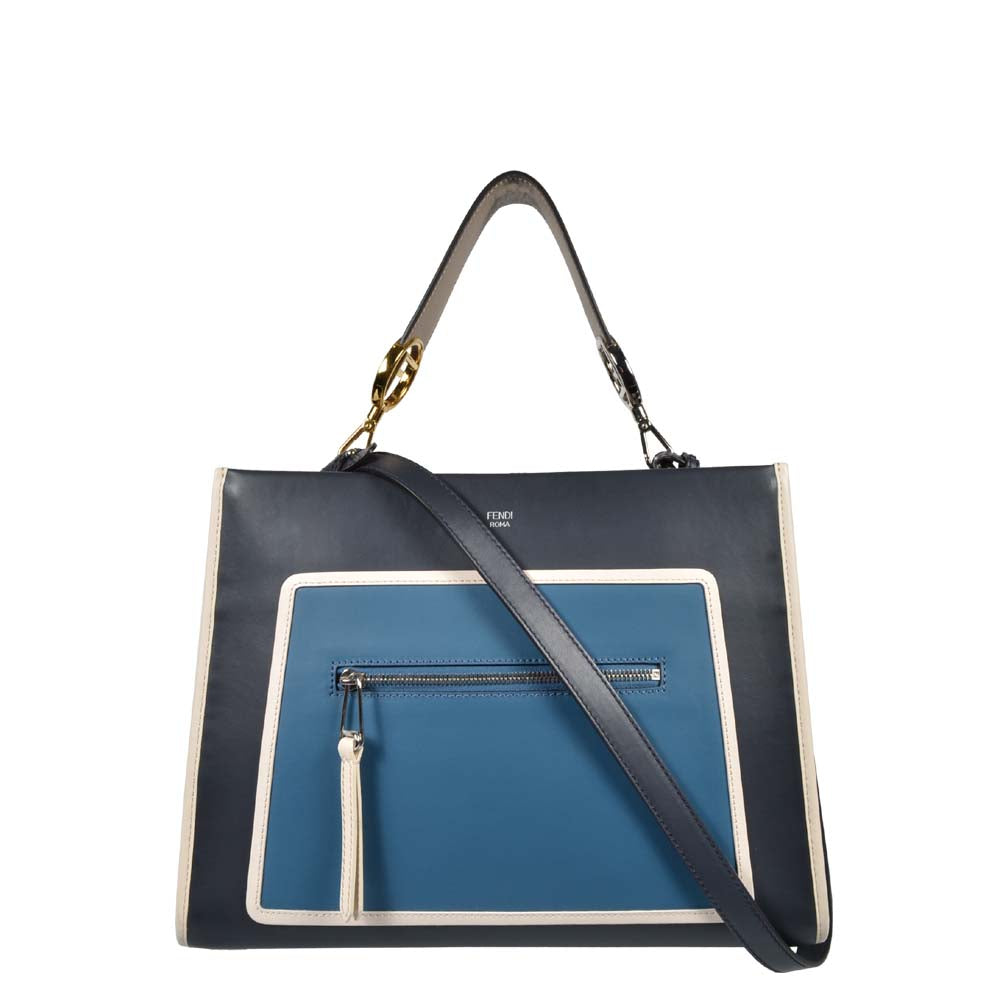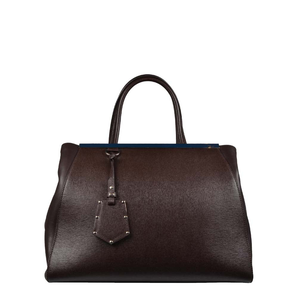 Fendi 2 Jours Leder Dunkelbraun Innen Blau Hardware Silber