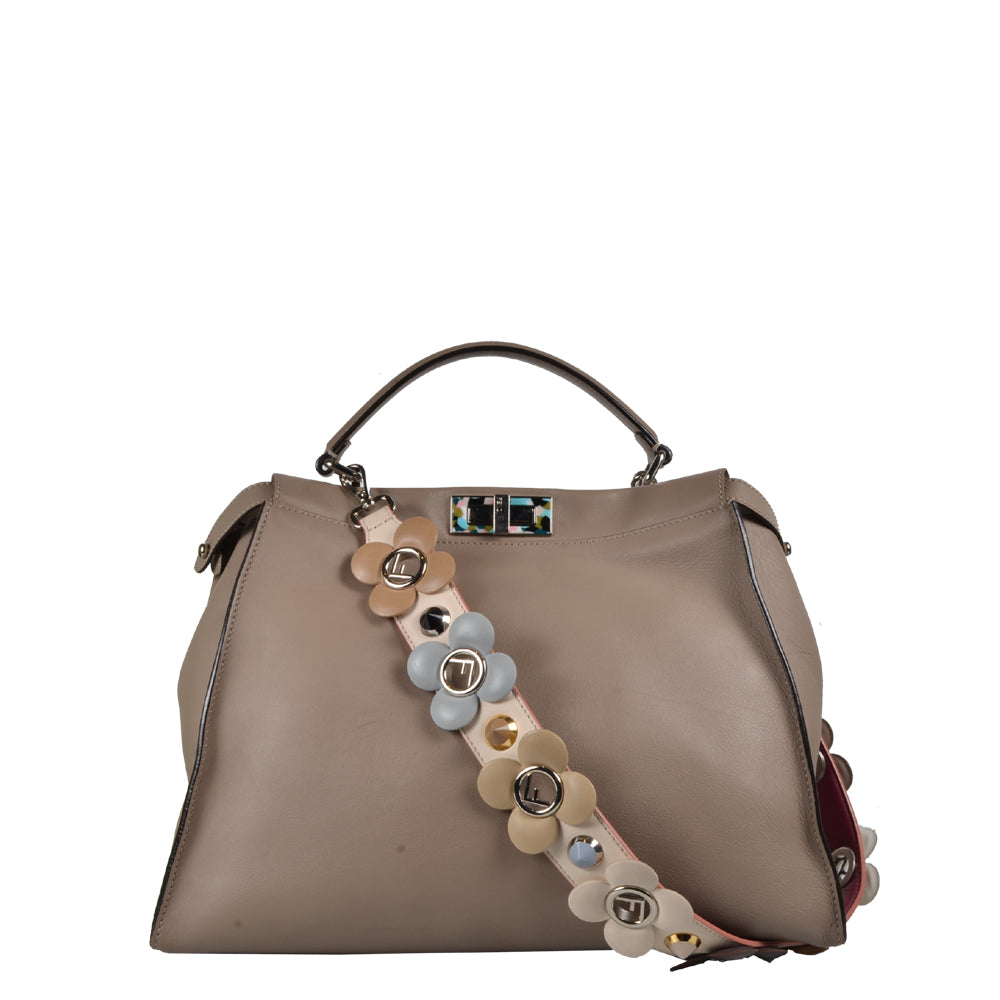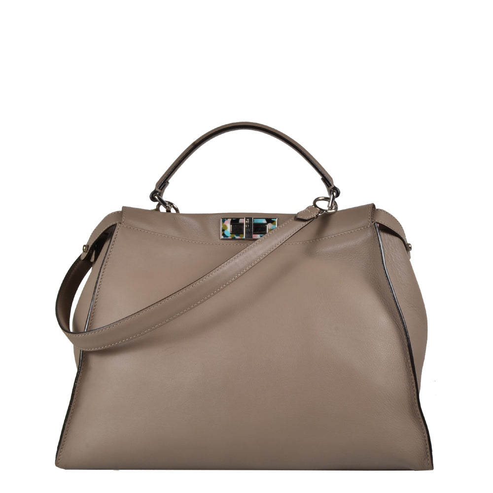 Fendi Peekaboo Large Leder Acryl Etoupe Rosa Blau Hardware Silber