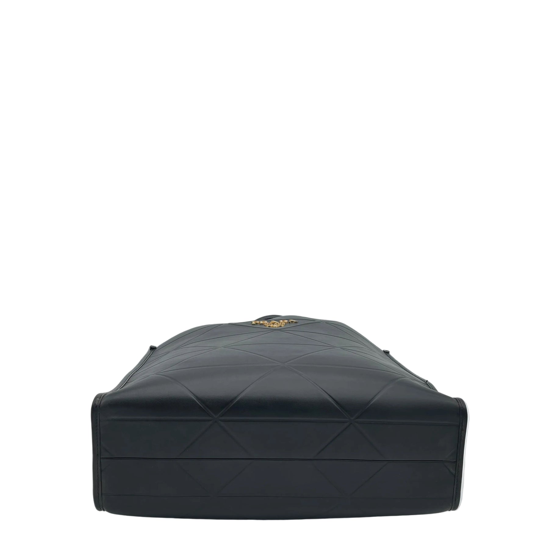 Elegante Prada Tote Bag in schwarzem Glattleder mit ikonischem Prada-Symbole Logo. Großzügiges Large-Format mit klarer Linienführung und goldfarbener Logo-Hardware. Zeitlos, hochwertig und ideal als stilvoller Daily-Shopper oder Business-Bag.