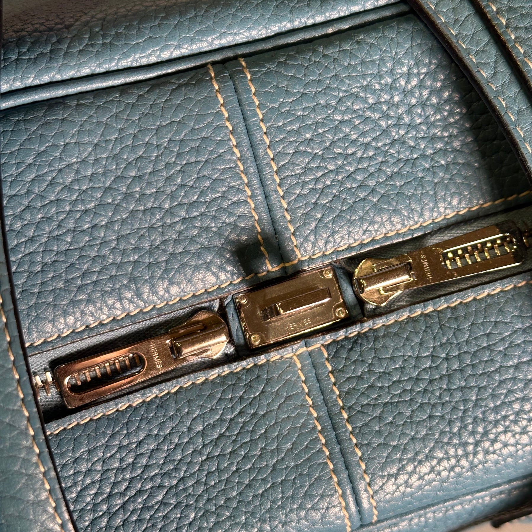 Die Hermes Victoria 36 Clemence Leder Jeansblau Hardware Palladium Tasche ist aus hochwertigem Leder gefertigt und verfügt über eine elegante Silhouette. Mit ihrem geräumigen Innenraum und dem zeitlosen Design ist sie perfekt für den täglichen Gebrauch geeignet. Die Palladium-Hardware verleiht ihr einen luxuriösen Touch.