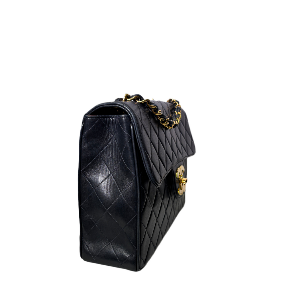 Chanel Tasche Classic Single Flap Vintage Jumbo Leder Dunkelblau Hardware Gold