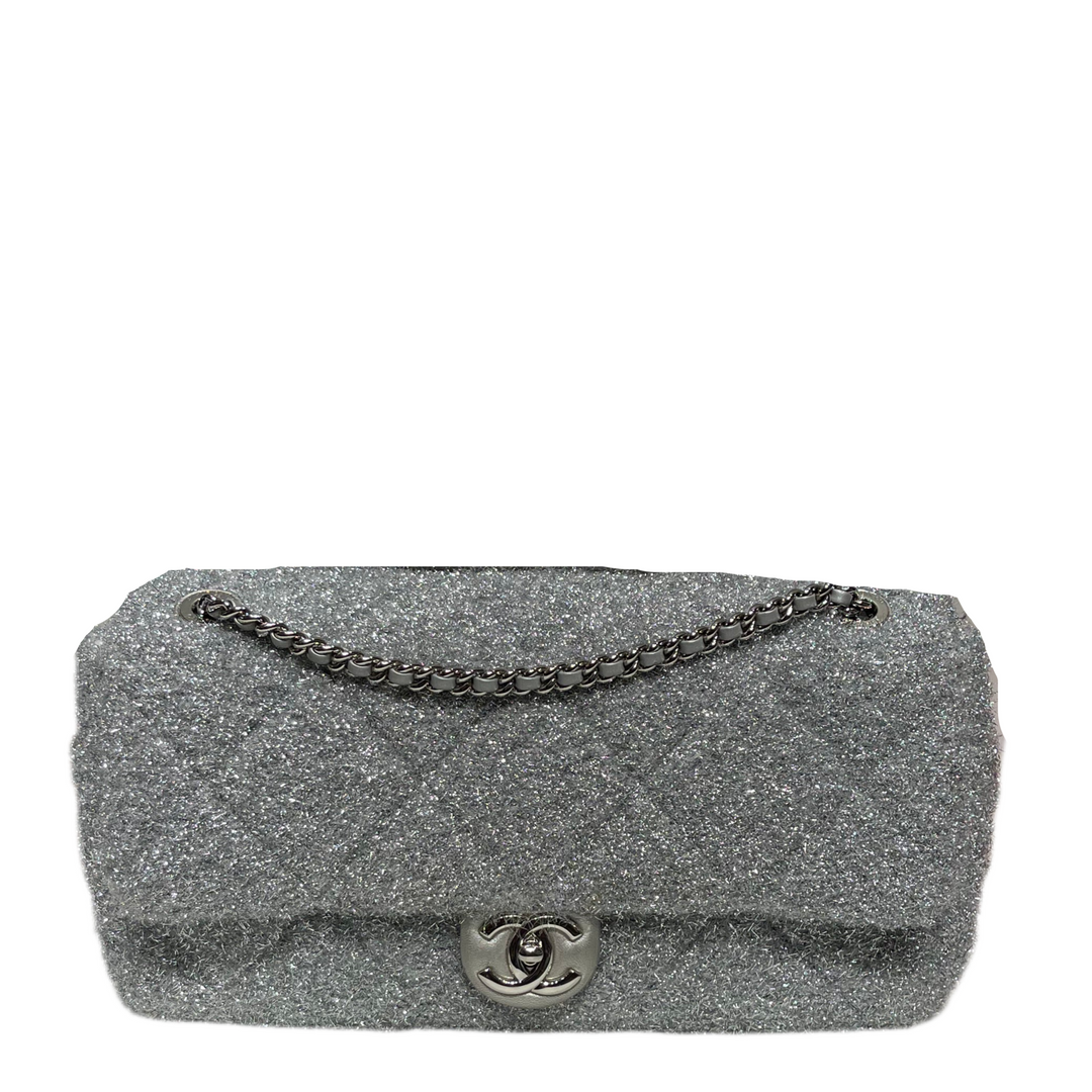 Chanel Tasche Timeless Pluto Glitter Lurex Quilted Flap Stoff/Leder Grau Hardware Silber ID:24******=2017/2018