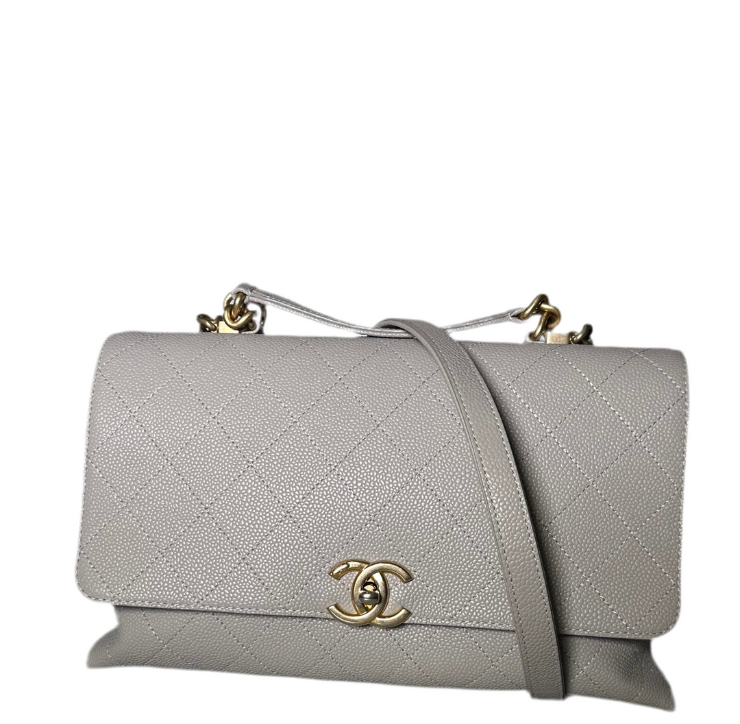 Chanel Tasche Caviar Leder Grau Hardware Eisgold