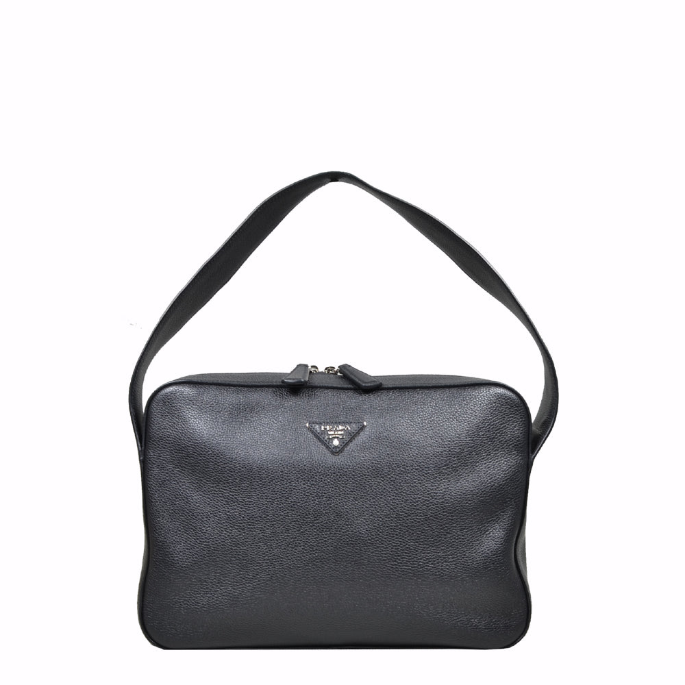 Prada Business Schultertasche Leder Schwarz Hardware Silber