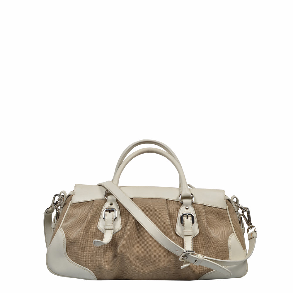 Prada Tasche Canvas Leder Logo weiß beige Bag