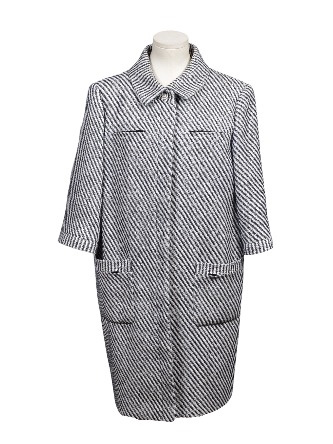 Chanel Coat Mantel White Blue Cotton Nylon Wool Size 48