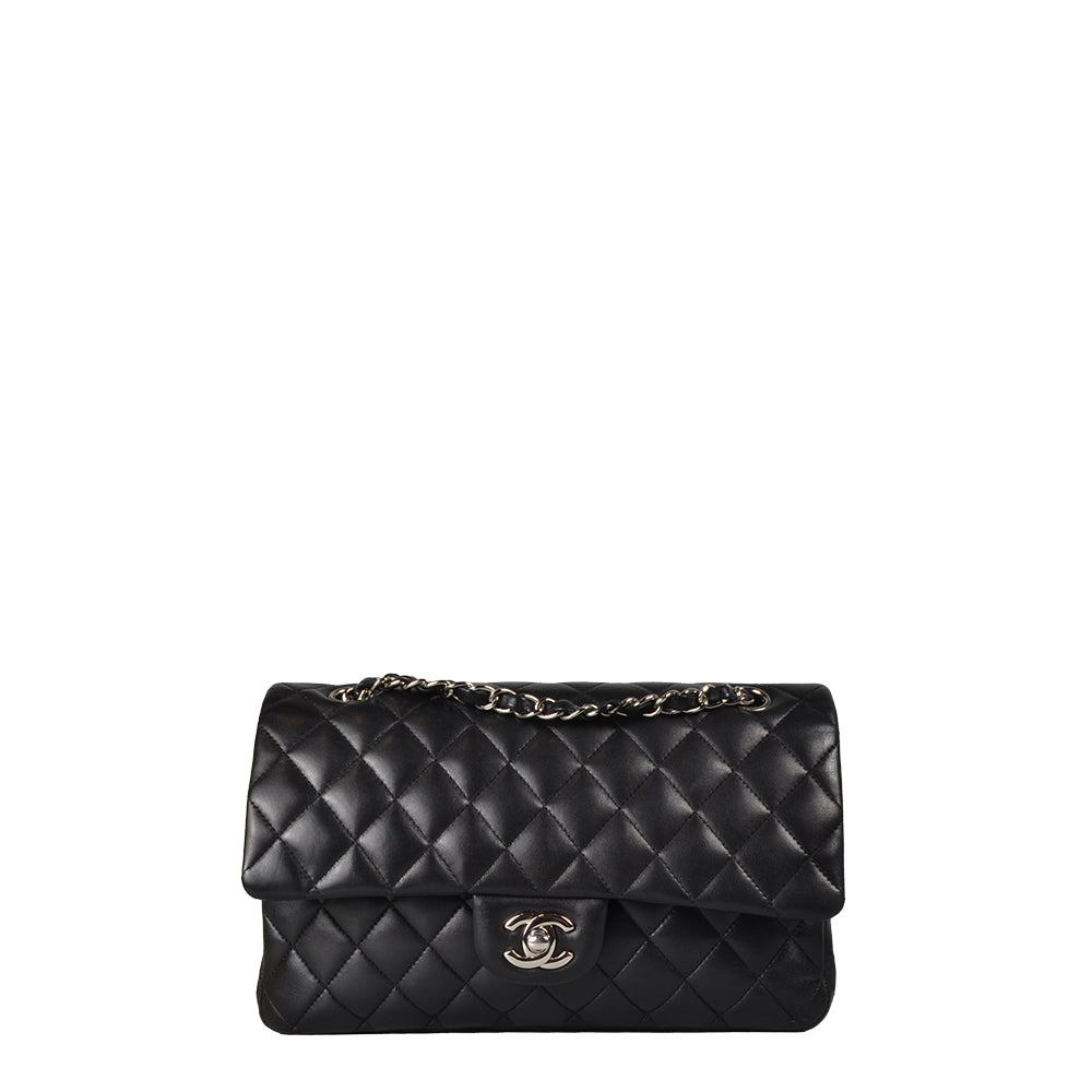 Chanel Timeless Double Flap Leder Schwarz Hardware Silber