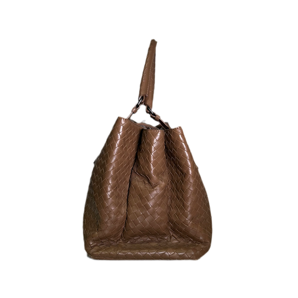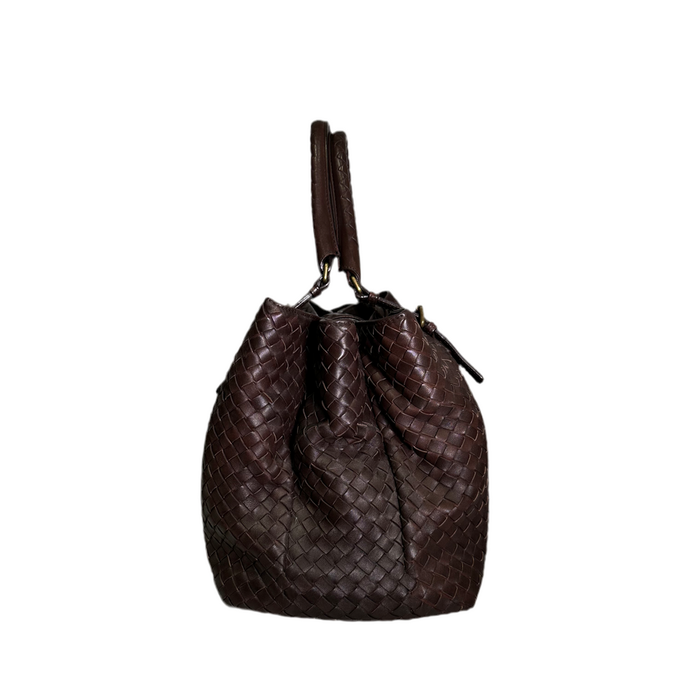 Bottega Veneta Roma MM Leder Intrecciato Braun Hardware Gold