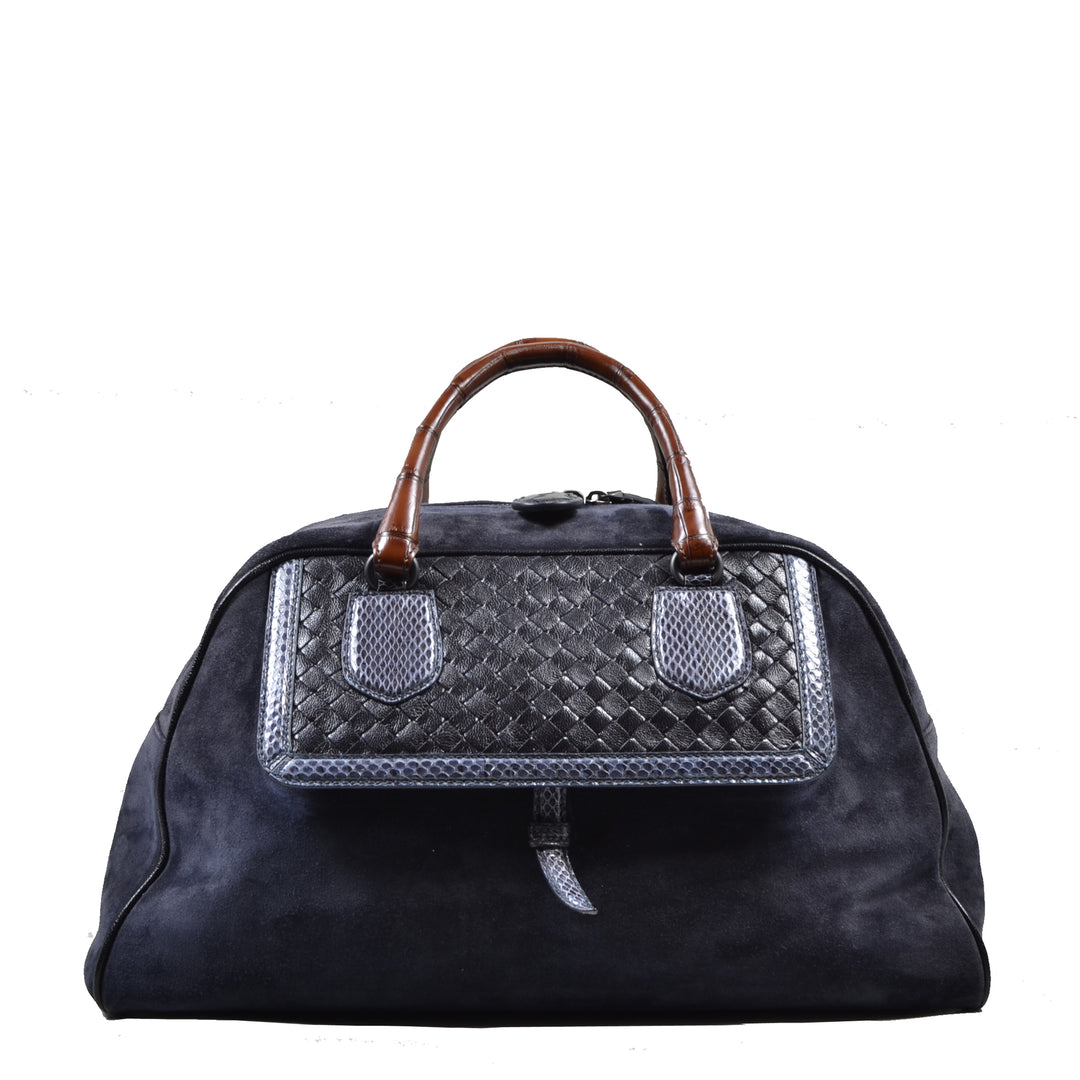 Bottega Veneta Tasche Bowling bag Wildleder Kroko blau braun