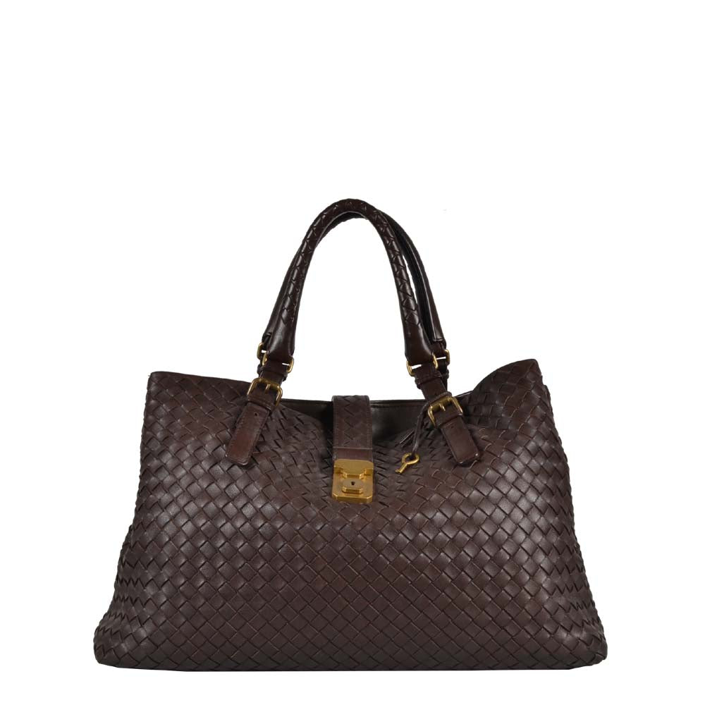 Bottega Tasche Roma MM Leder Geflochten Braun Hardware Gold