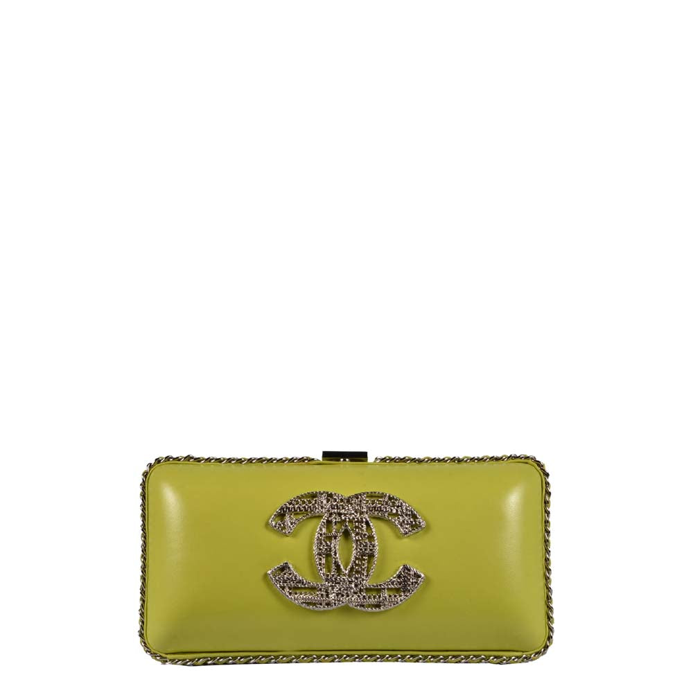 Chanel Clutch Leder Limette Hardware Silber mit Schulterriemen
