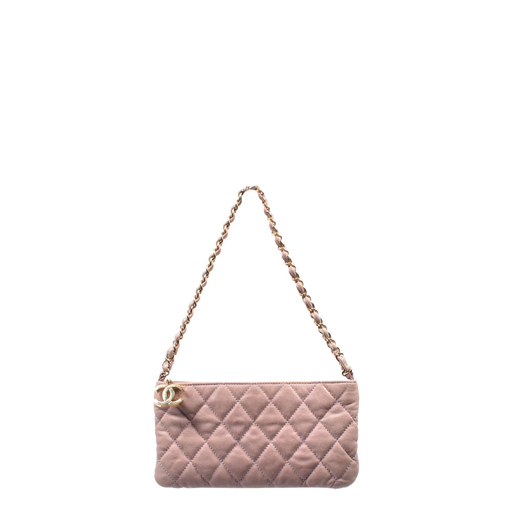 Chanel Clutch Bag Pochette Leder rose Leather Chain Gold CC