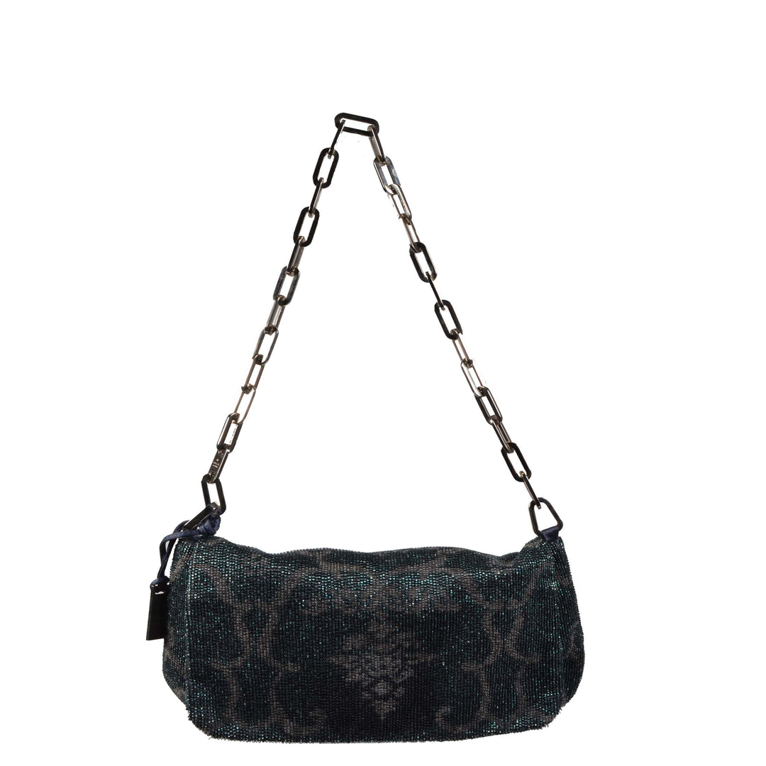 Prada Tasche Clutch aus Mesh und Satin schwarz gold weiß