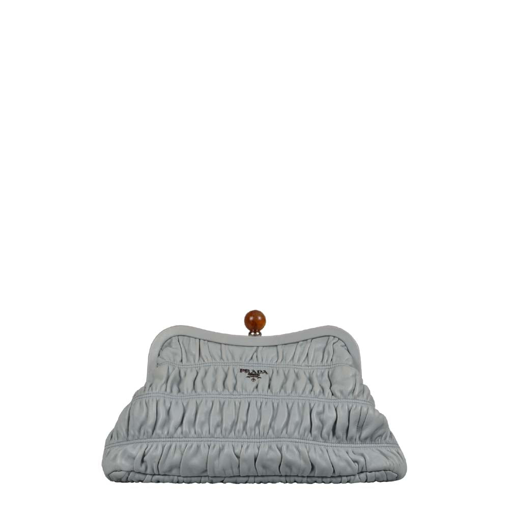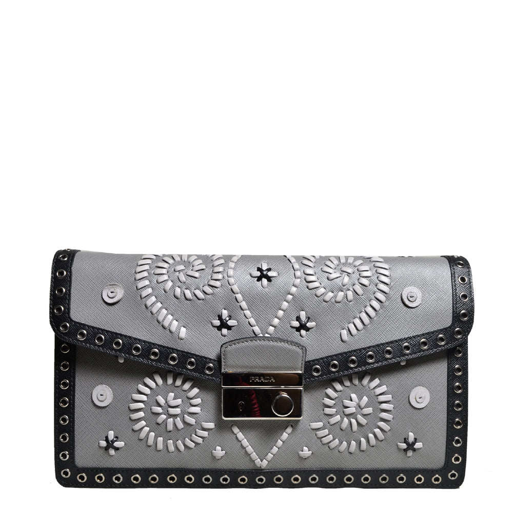 Prada Clutch Marmo Nube Limited Edition Saffiano Leder Naht-Verzierungen Grau Weiß Hardware Silber