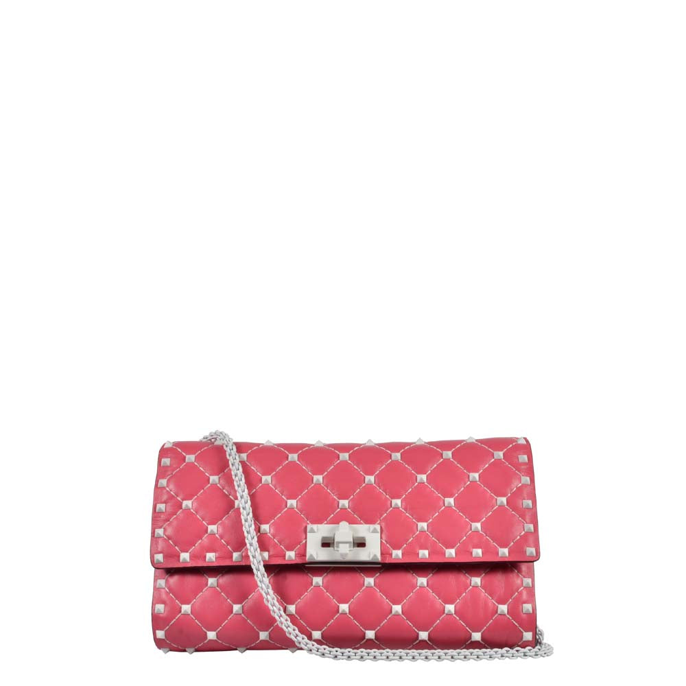 Valentino Garavani Nappa Leder Clutch Pochette Spike pink weiß