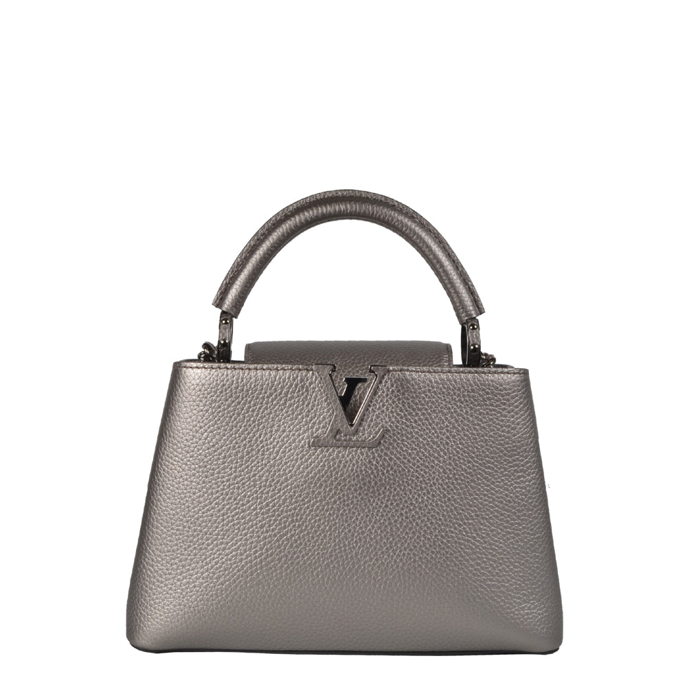 Louis Vuitton Capucines BB Taurillonleder Metallic Grau Hardware Silber