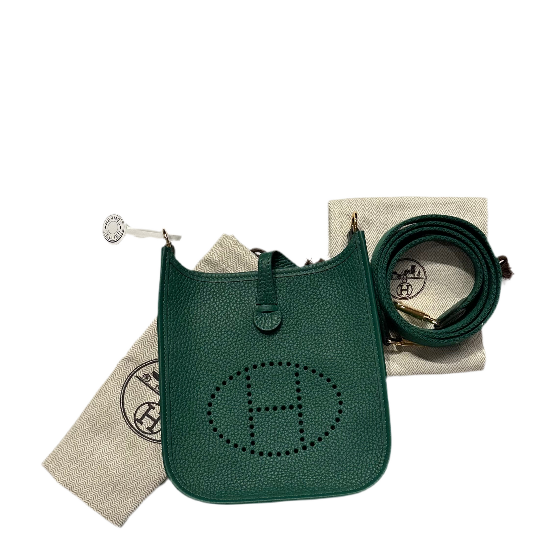 Hermes Evelyne 16 Clemence Vert Vertigo Hardware Gold bietet praktischen Komfort und zeitlosen Stil. Hergestellt aus hochwertigem Clemence-Leder und verziert mit den markanten Hermes-Druckknöpfen, bietet diese Tasche eine Menge Stauraum und ist der perfekte Begleiter für den Alltag. Mit seinem Gold-Hardware-Design ist es auch ein echtes modisches Statement.