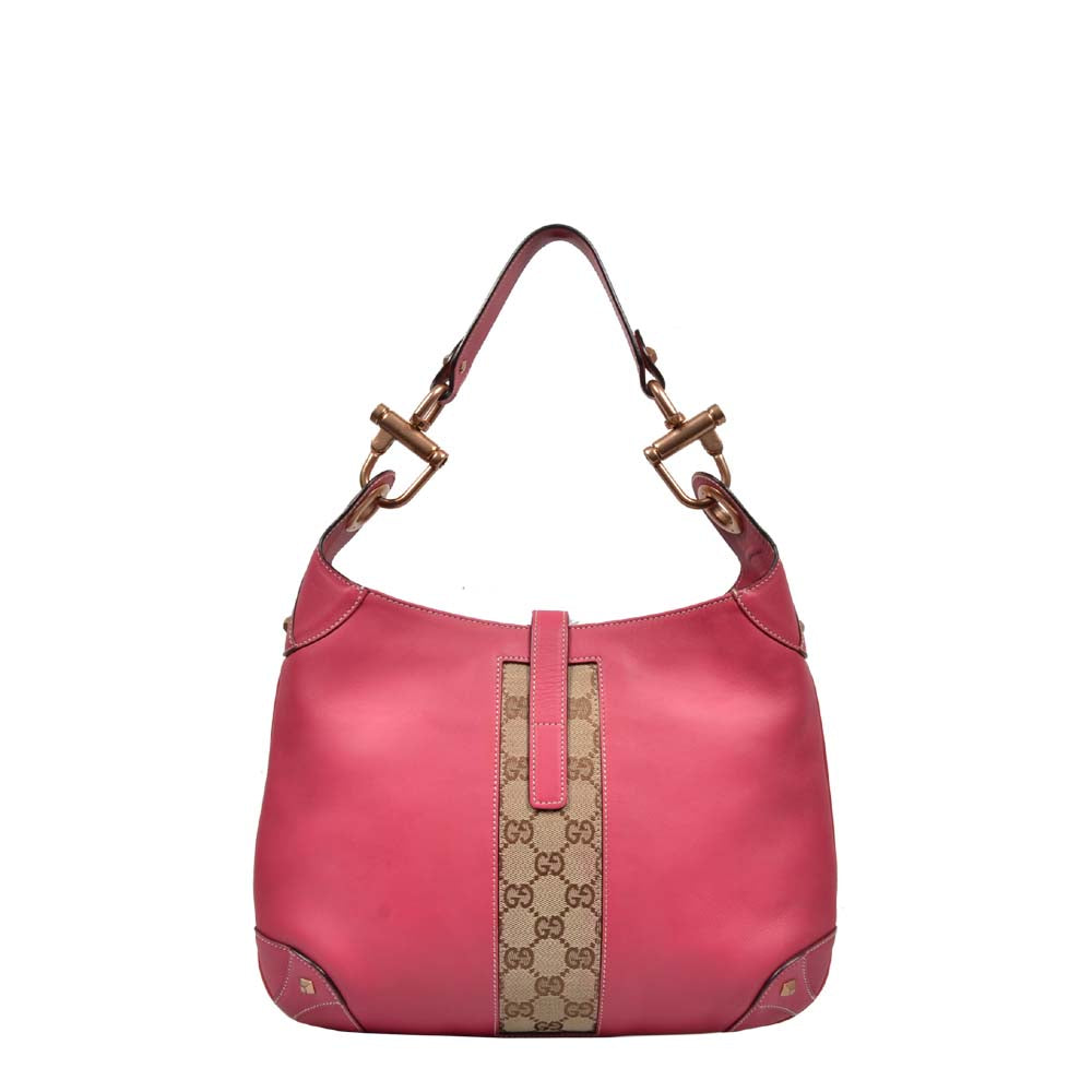 Gucci Tasche Bag Jacky O Canvas Leder Pink Gold Guccissima