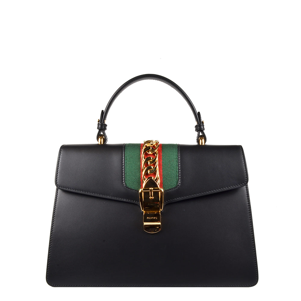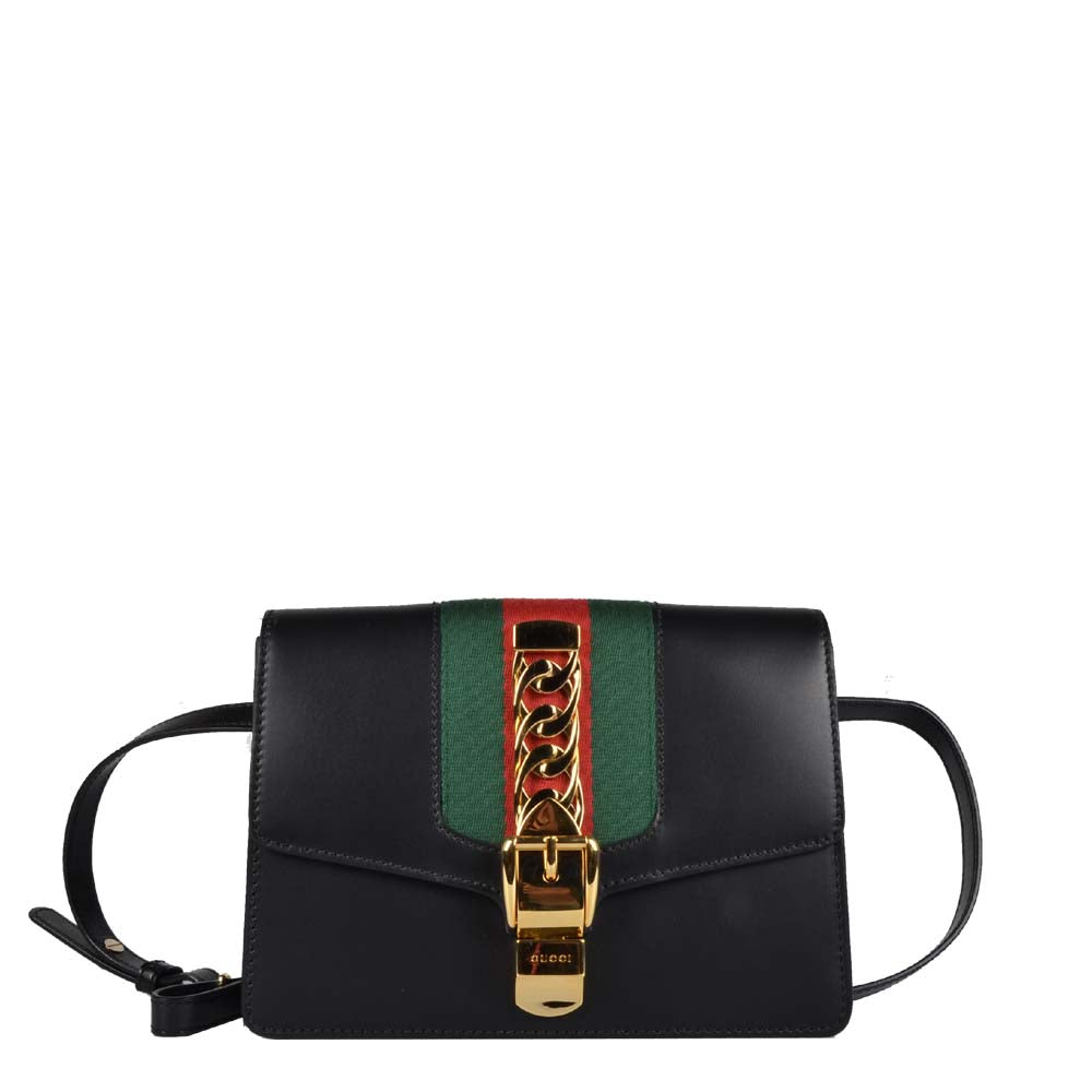 Gucci Tasche Sylvie Leder schwarz gold grün bag