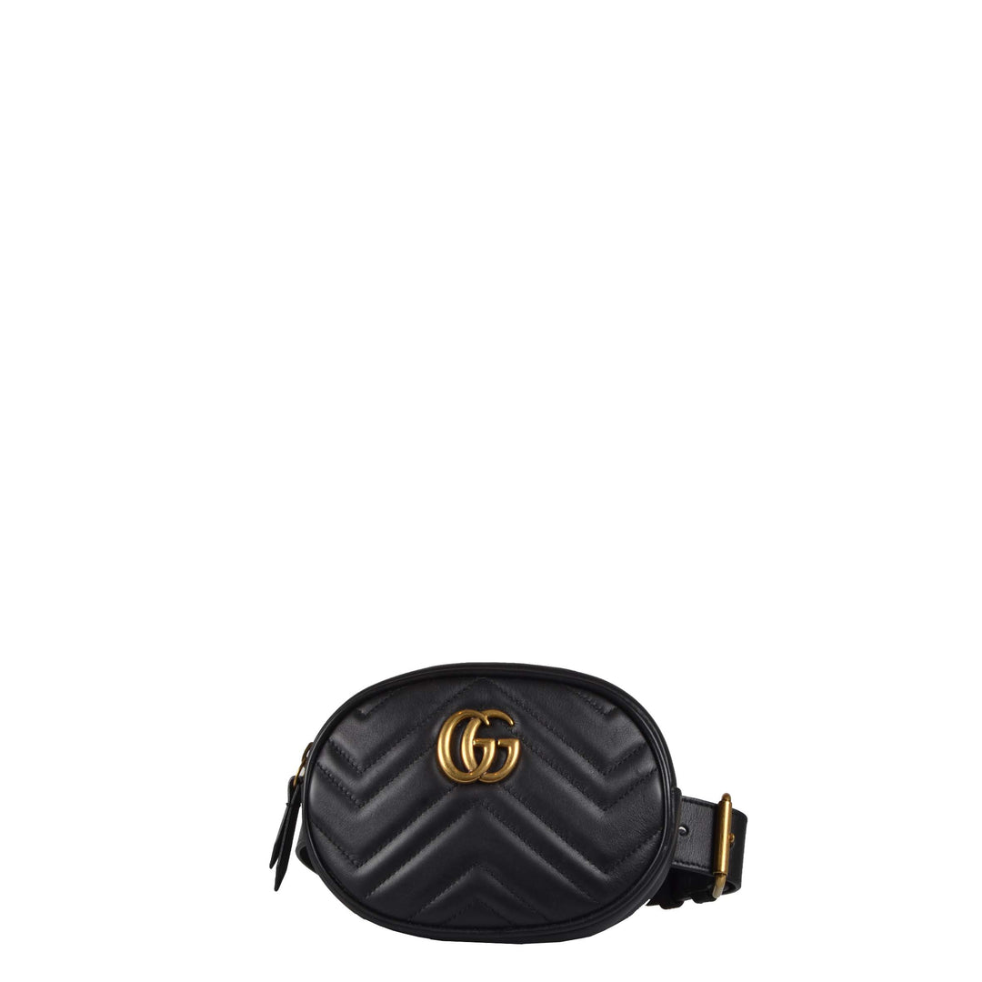Gucci Marmont Gürteltasche Leder schwarz GG Logo bronze