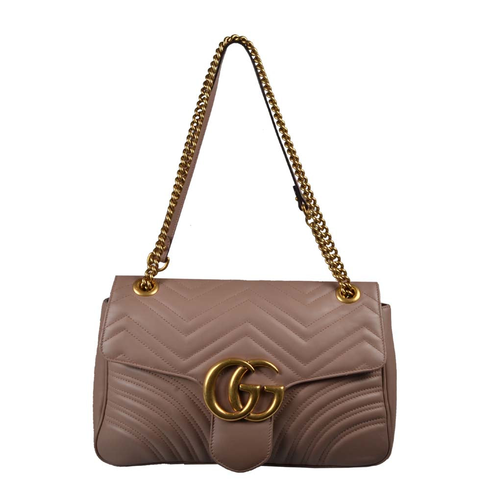 Gucci Marmont Tasche Guccissima Leder rose Schulterriemen Kette HW gold