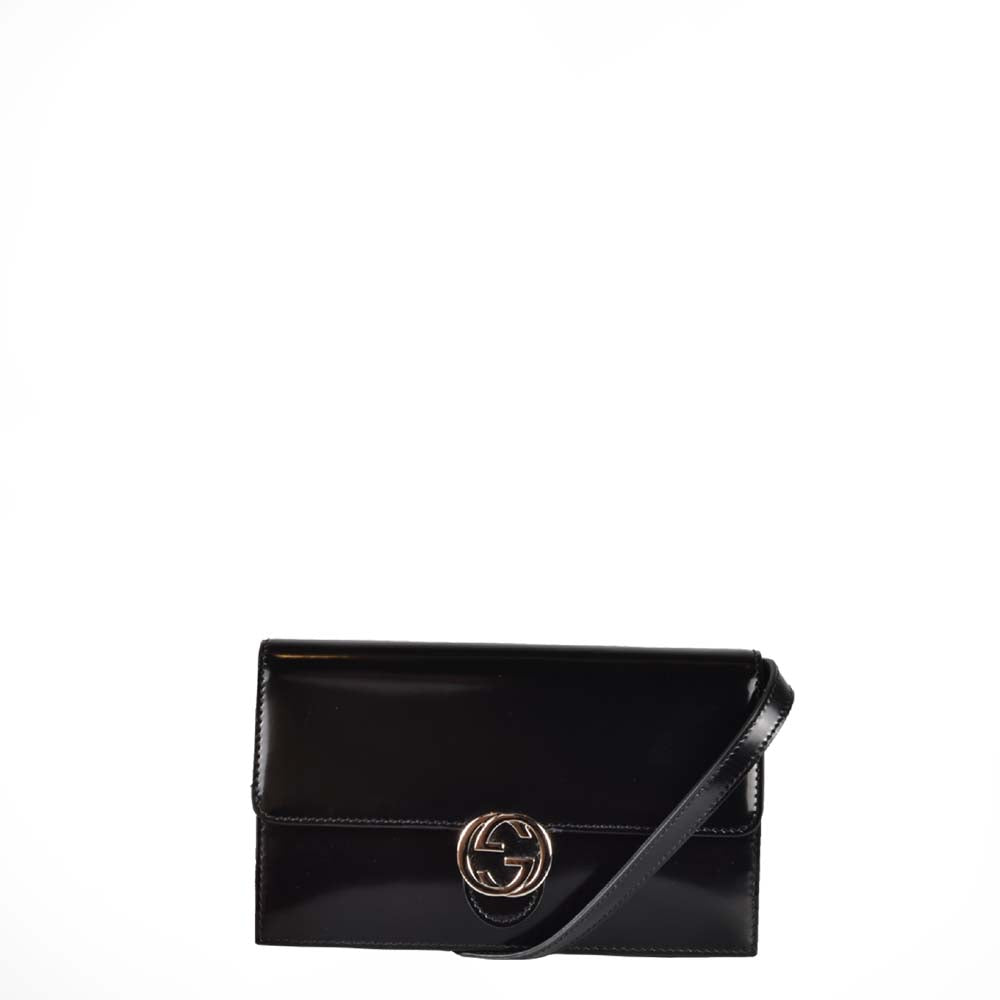 Gucci Pochette Glattleder Schwarz GG Logo Silber mit Schulterriemen