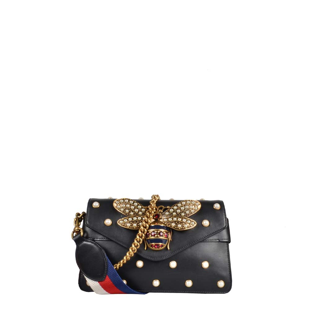 Gucci Broadway Pearly Bee Schmetterling Leder Schwarz mit Kettenriemen