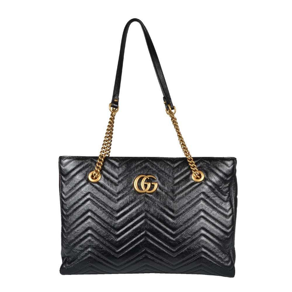 Gucci Tote Medium Leder Marmont Matelasse Schwarz Hardware Gold