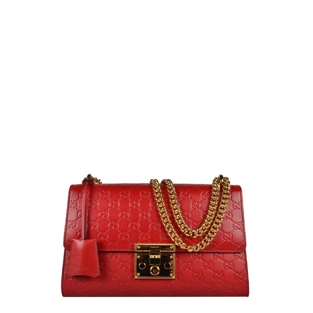 Gucci Tasche Padlock Medium Leder Rot Guccissima Kette Hardware Gold