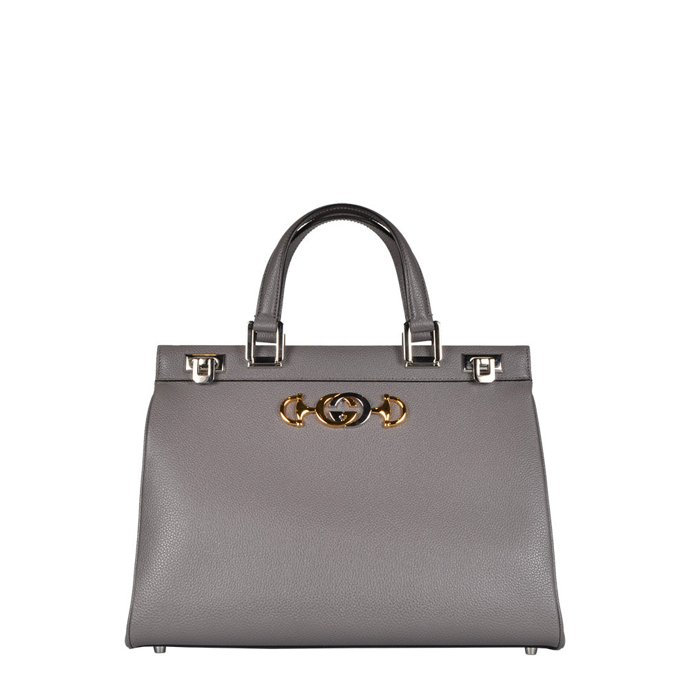 Gucci Zumi Medium grey grainy leather GG Logo shoulder bag