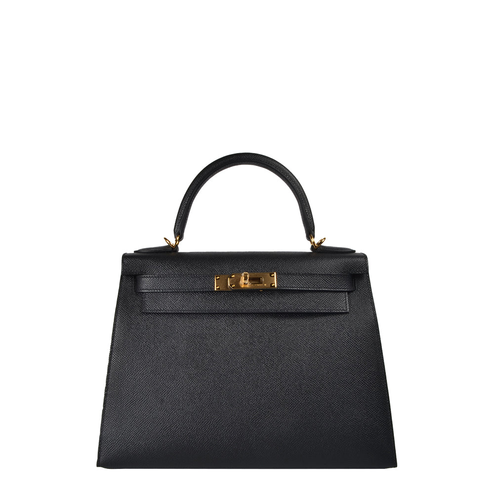 Hermes Kelly 25 Epsom Leder Schwarz Hardware Gold
