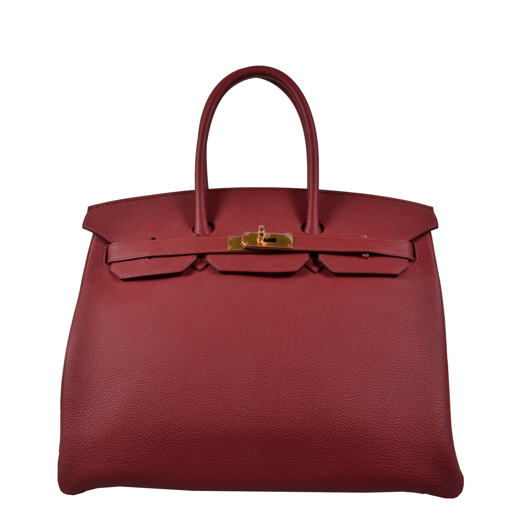 Diese tolle Birkin stammt aus dem Hause Hermes und ist hier in der Größe 35 erhältlich. Der Farbton nennt sich Rouge Grenat, eine schöne, kräftige Farbe.