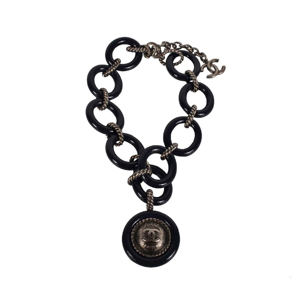 Chanel Kette Arts and Metiers 2018 Navy Resin silver logo Necklace mit rundem CC Anhänger