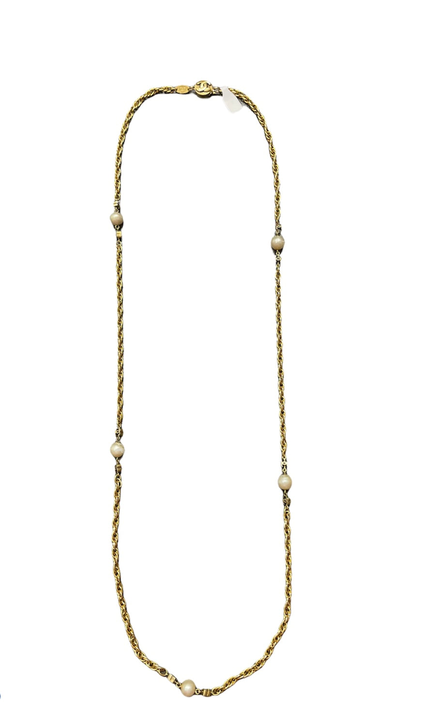 Chanel Kette Perlen Sautoir CC Logo Necklace Gold Vintage