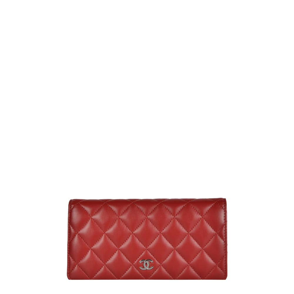 Chanel Geldbörse Lammnappa Leder schwarz gesteppt CC Logo Hardware Gold