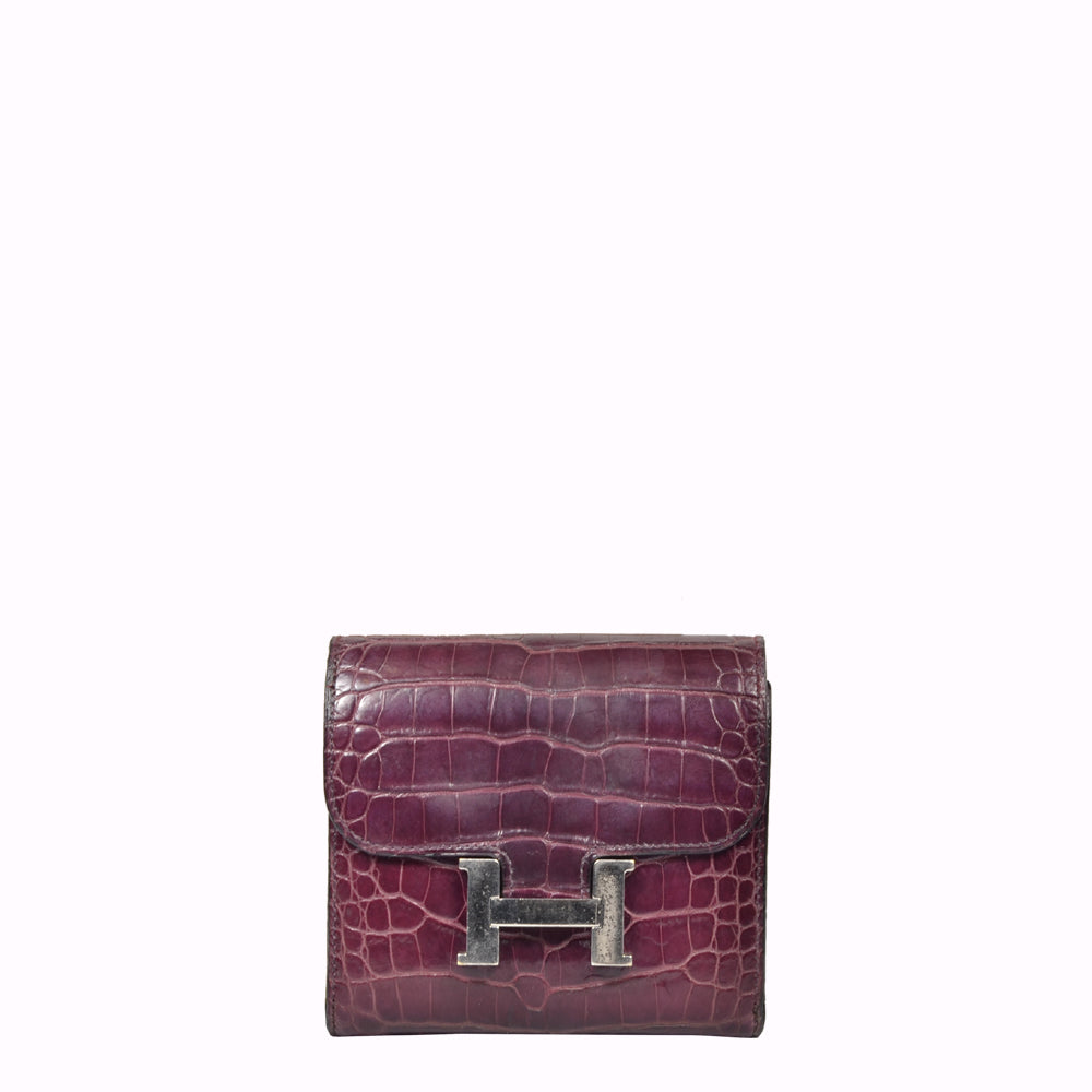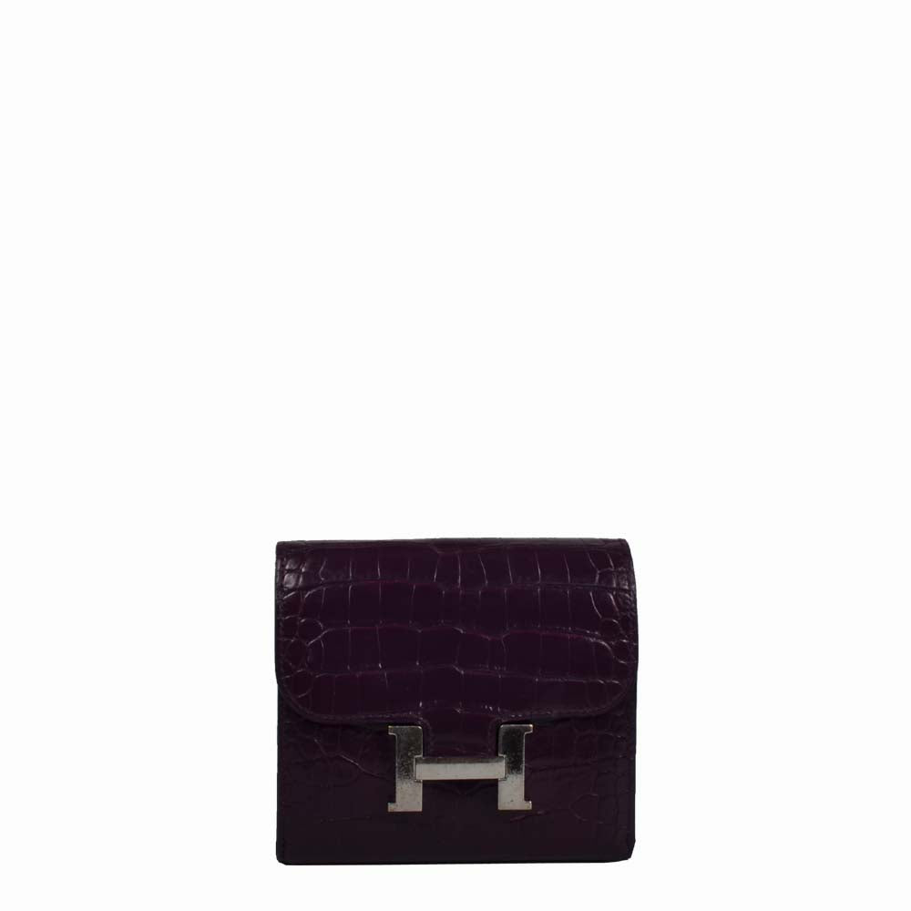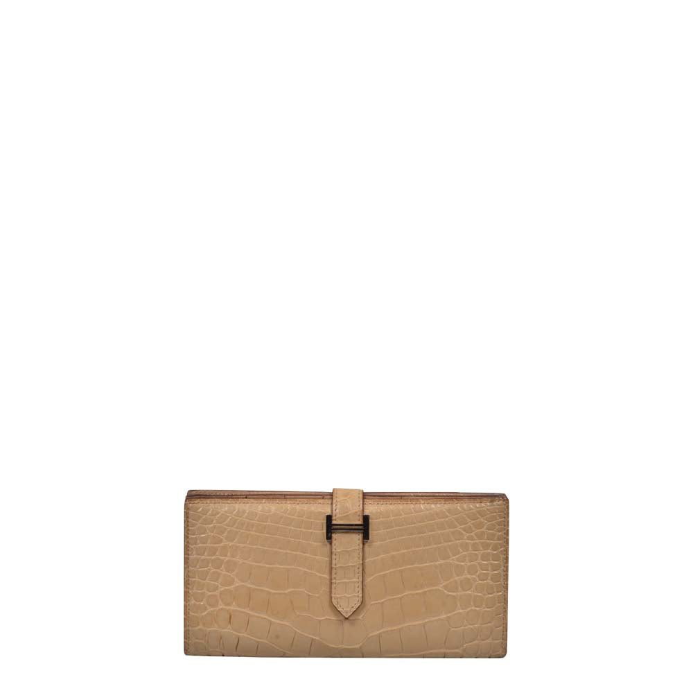 Hermes Wallet Geldbörse Bearn Niloticus Fauve Crocodile Leather Palladium