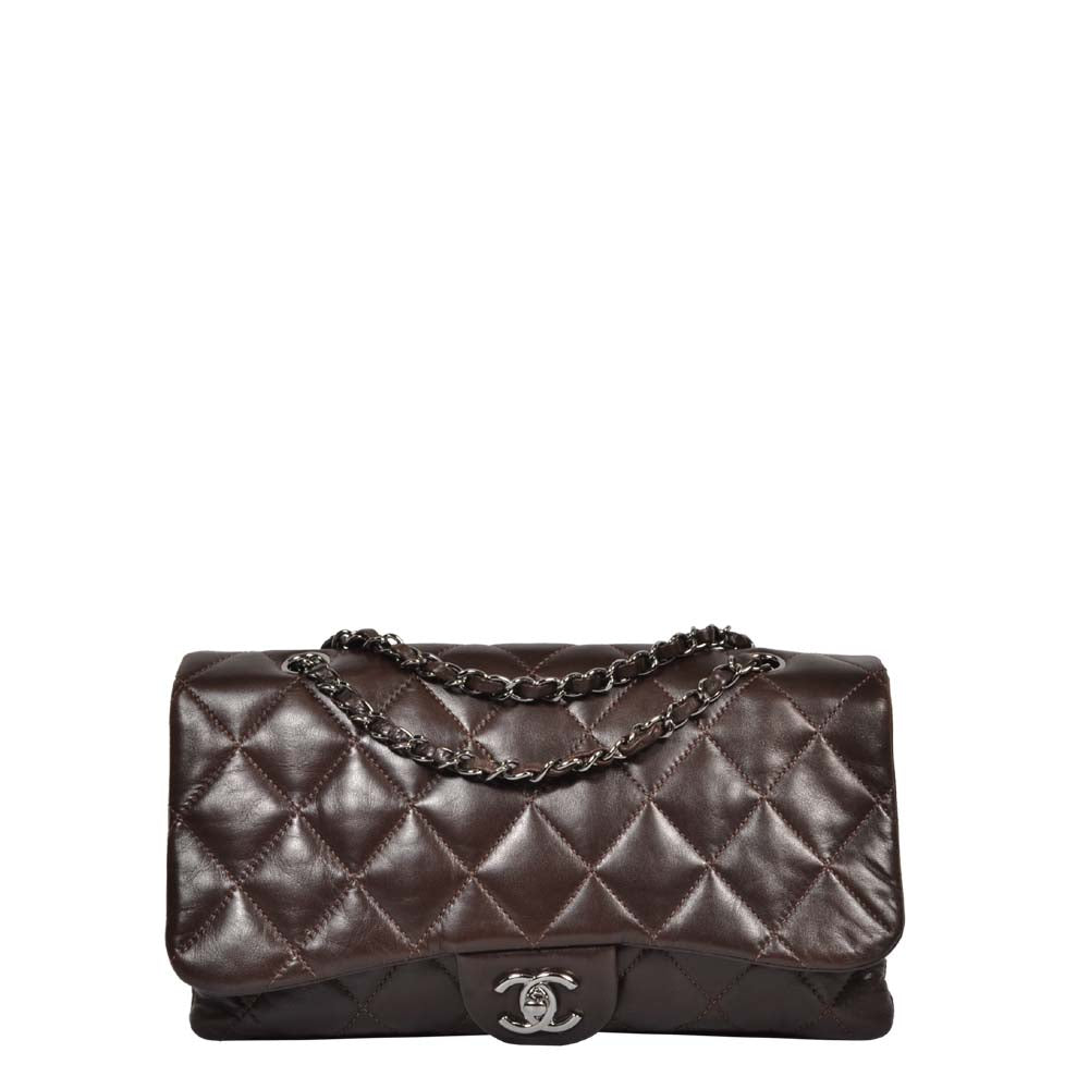 Chanel 3 Flap 30 Nappa Leder Braun Hardware Silber Kette