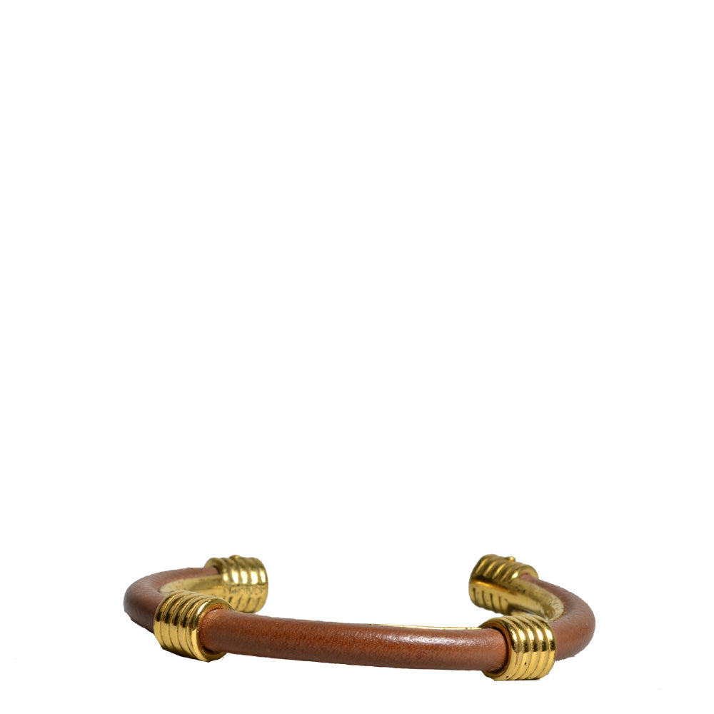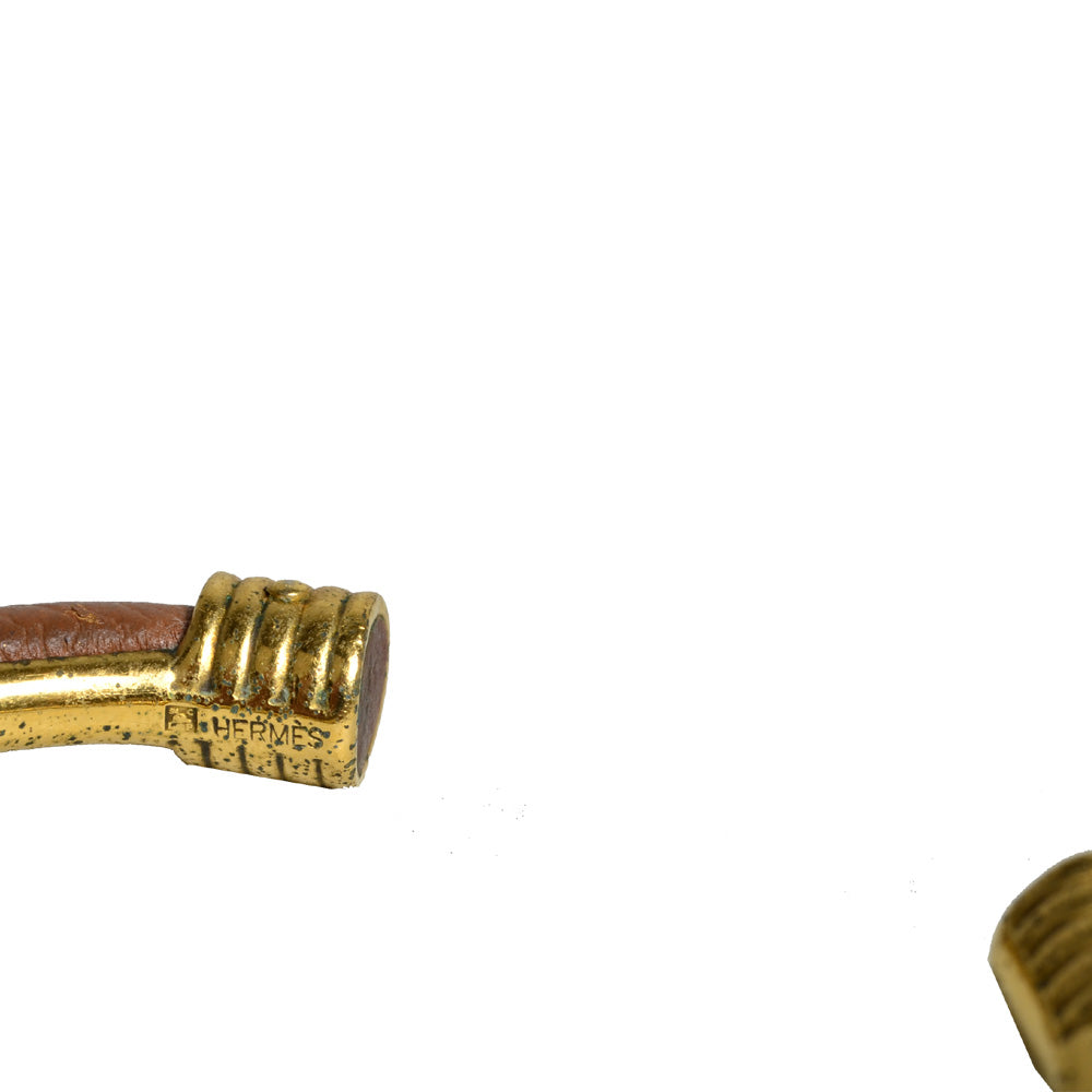Hermes Armreif Leder Metall Gold Vintage