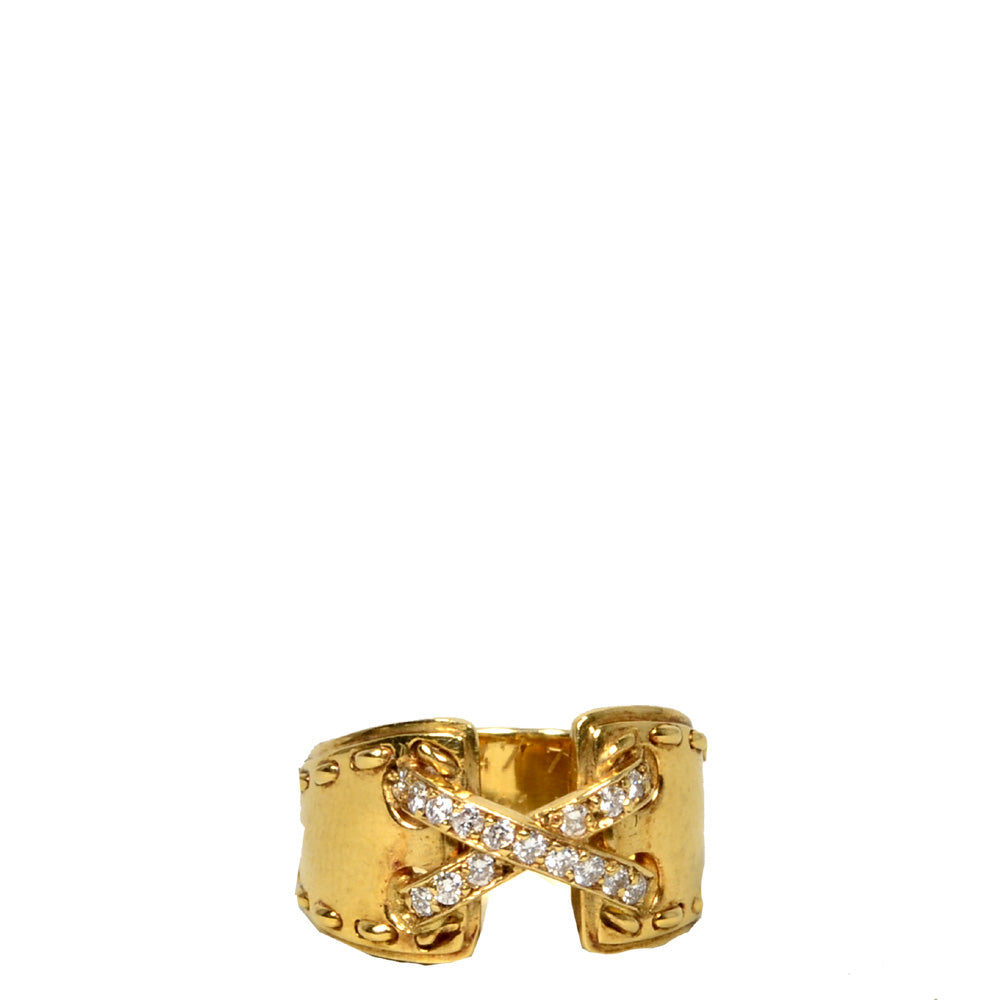 Hermes Ring Gold 750 Diamonds Pave X Size 47 Vintage