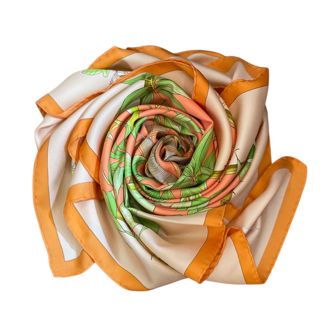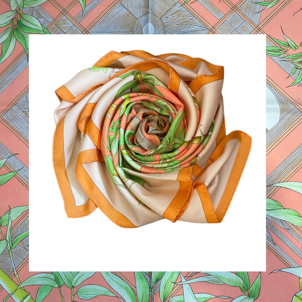 Hermes Carre Serenite Apricot Grün Seide 90 x 90 cm