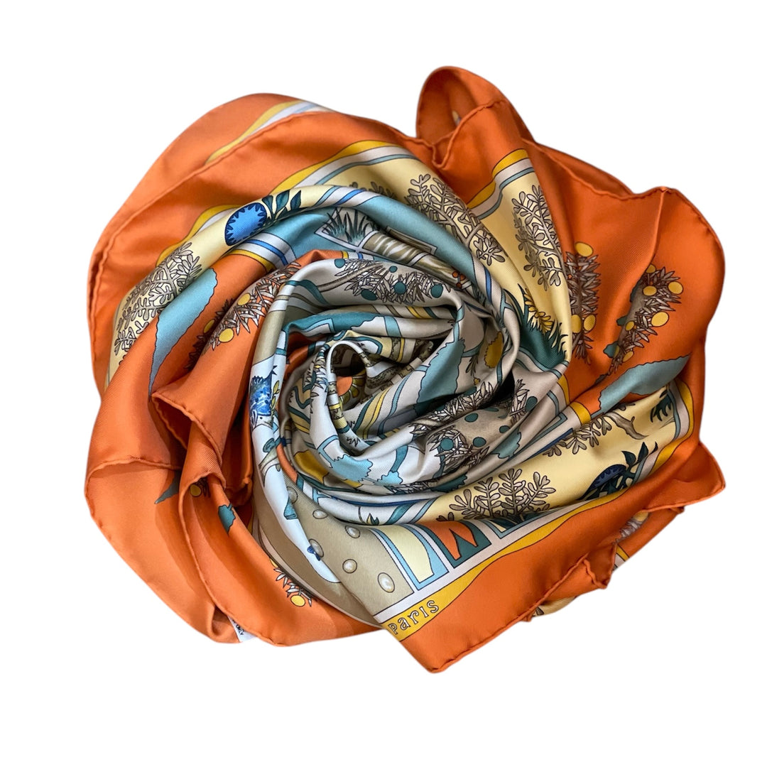 Hermes Carre Paridaiza Orange Beige Seide 90 x 90 cm