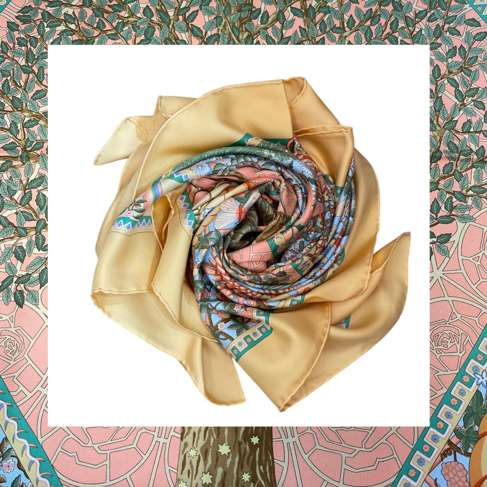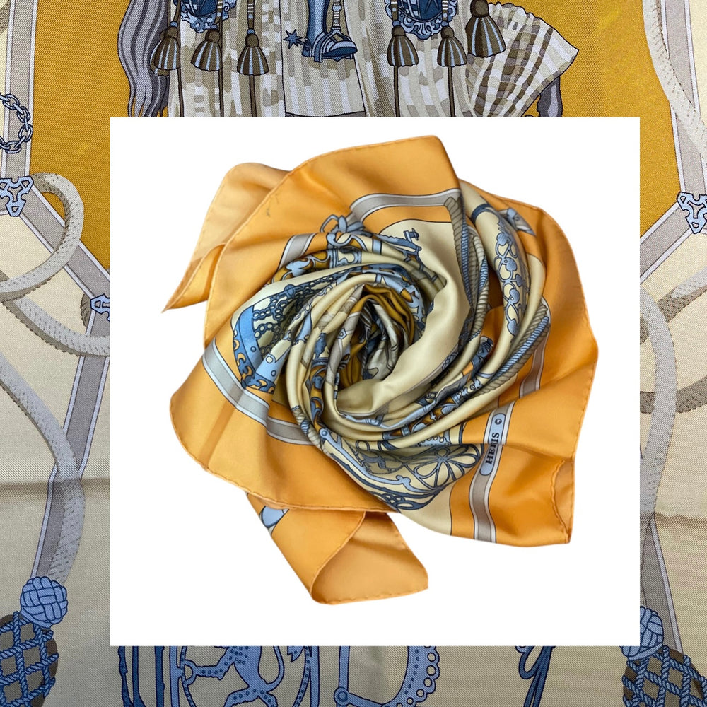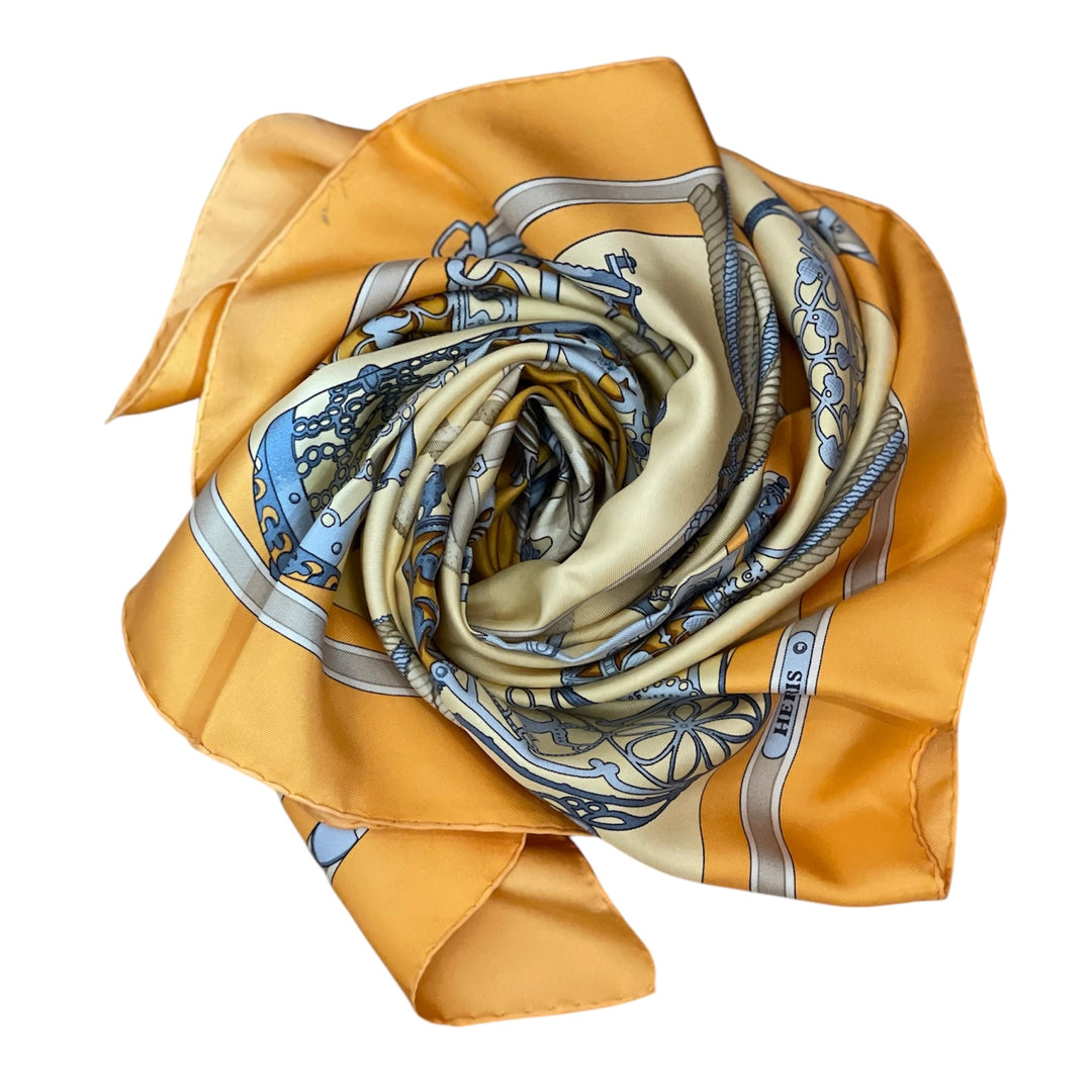 Hermes Vintage Carre Silk Seide Soie Seidentuch yellow