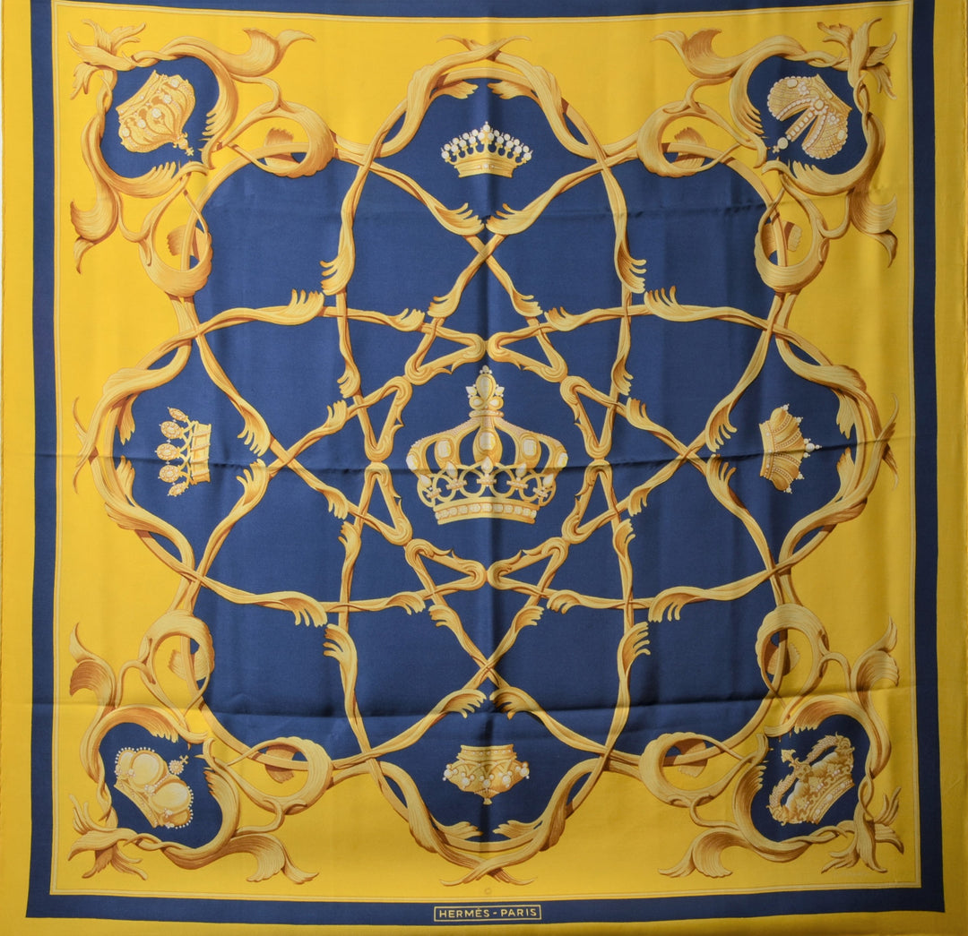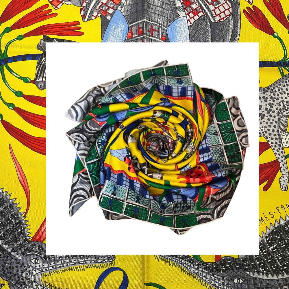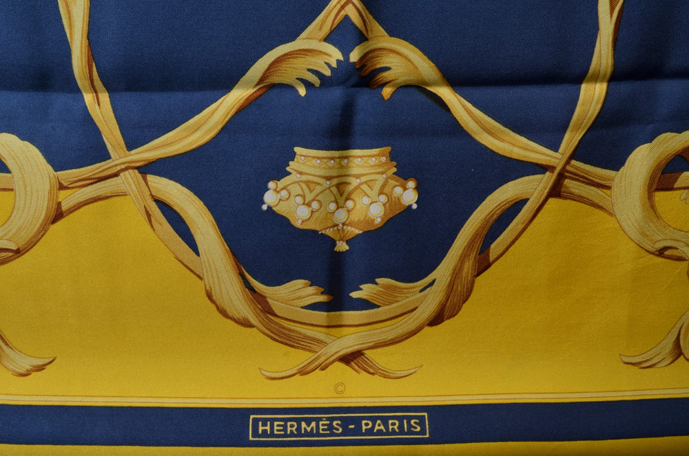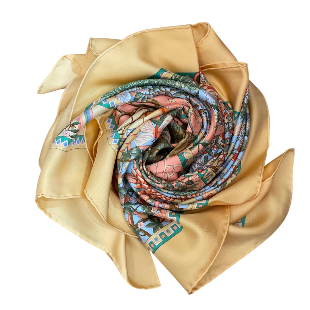 Hermes Vintage Carre Silk Seide Soie Seidentuch yellow