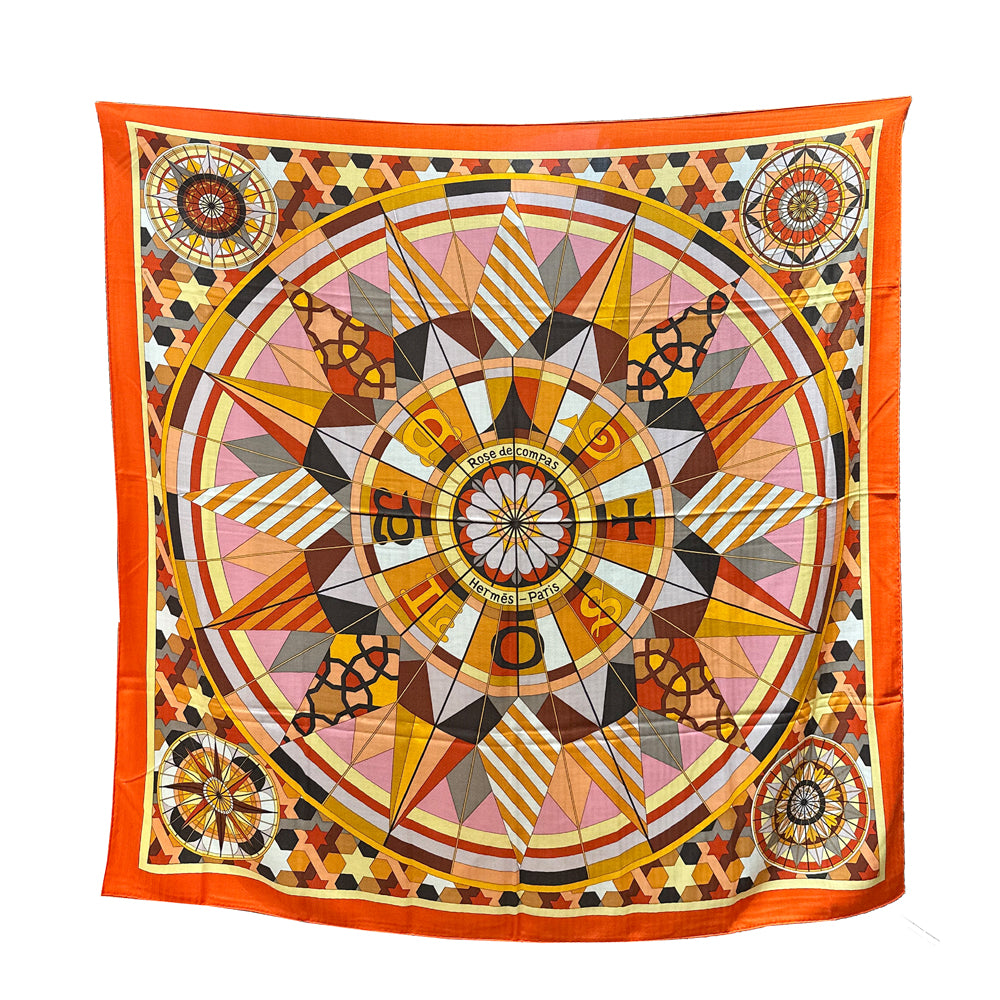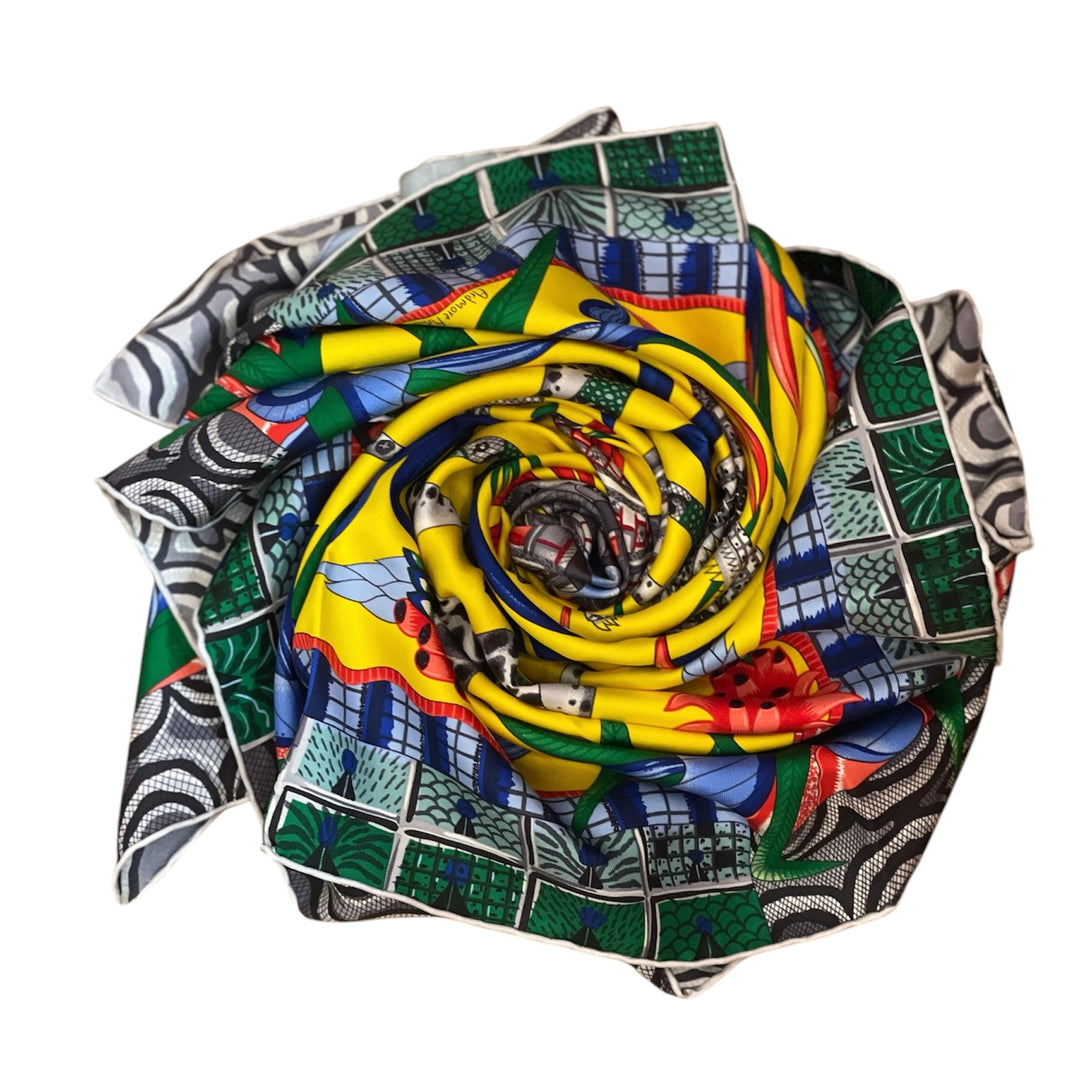 Hermes Carre Axis Mundi Gelb Orange Grün Seide 90 x 90 cm