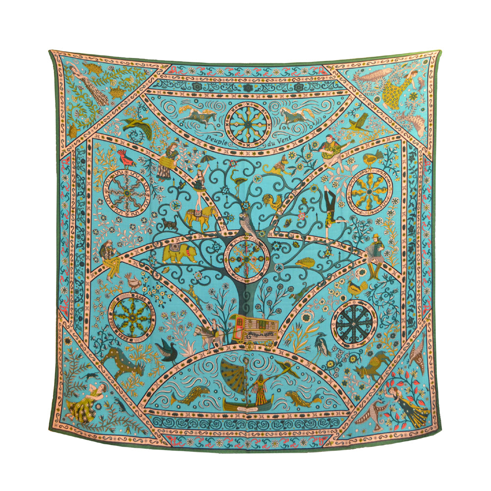 Hermes Carre Scarf Sous L'egide de Mars Cashmere / Silk 140 x 140 cm green türkis brown lilac