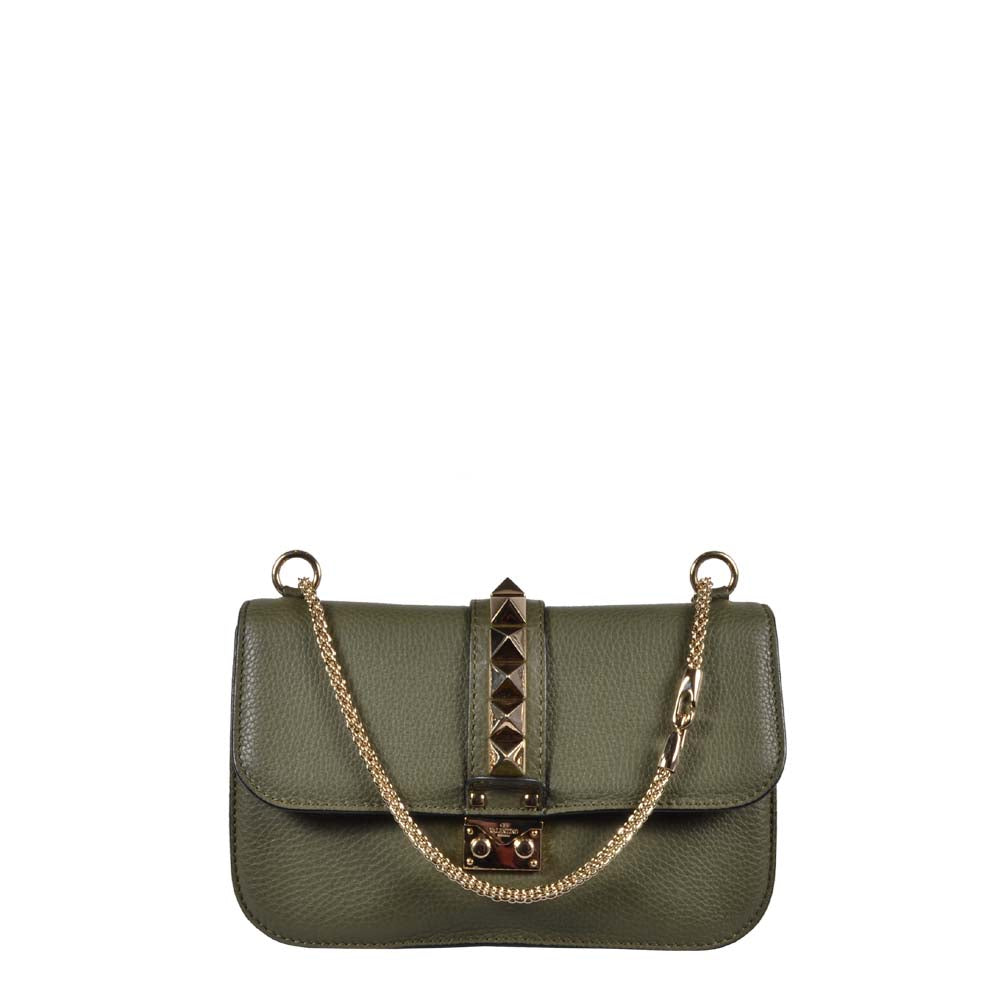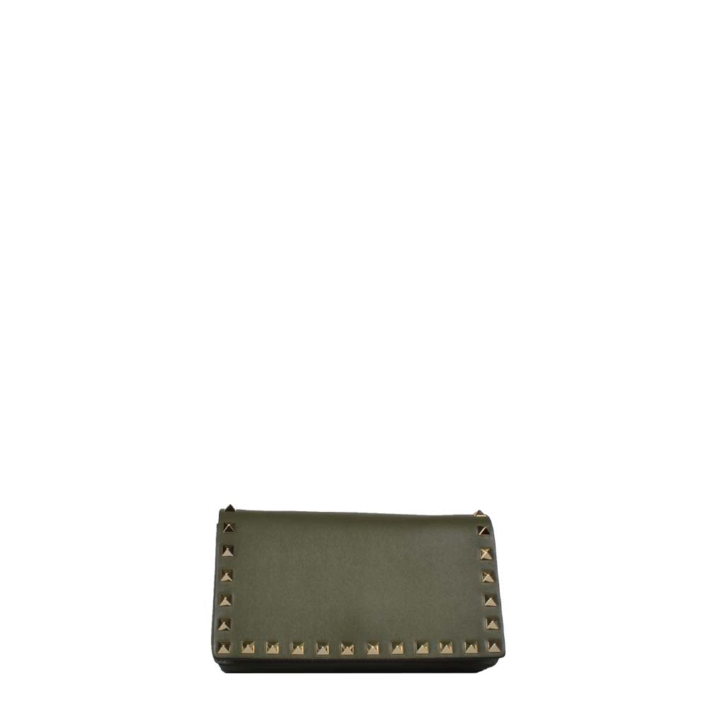 Valentino pochette Rockstud Leder Oliv Kettenriemen Gold Studs